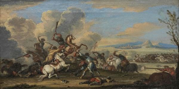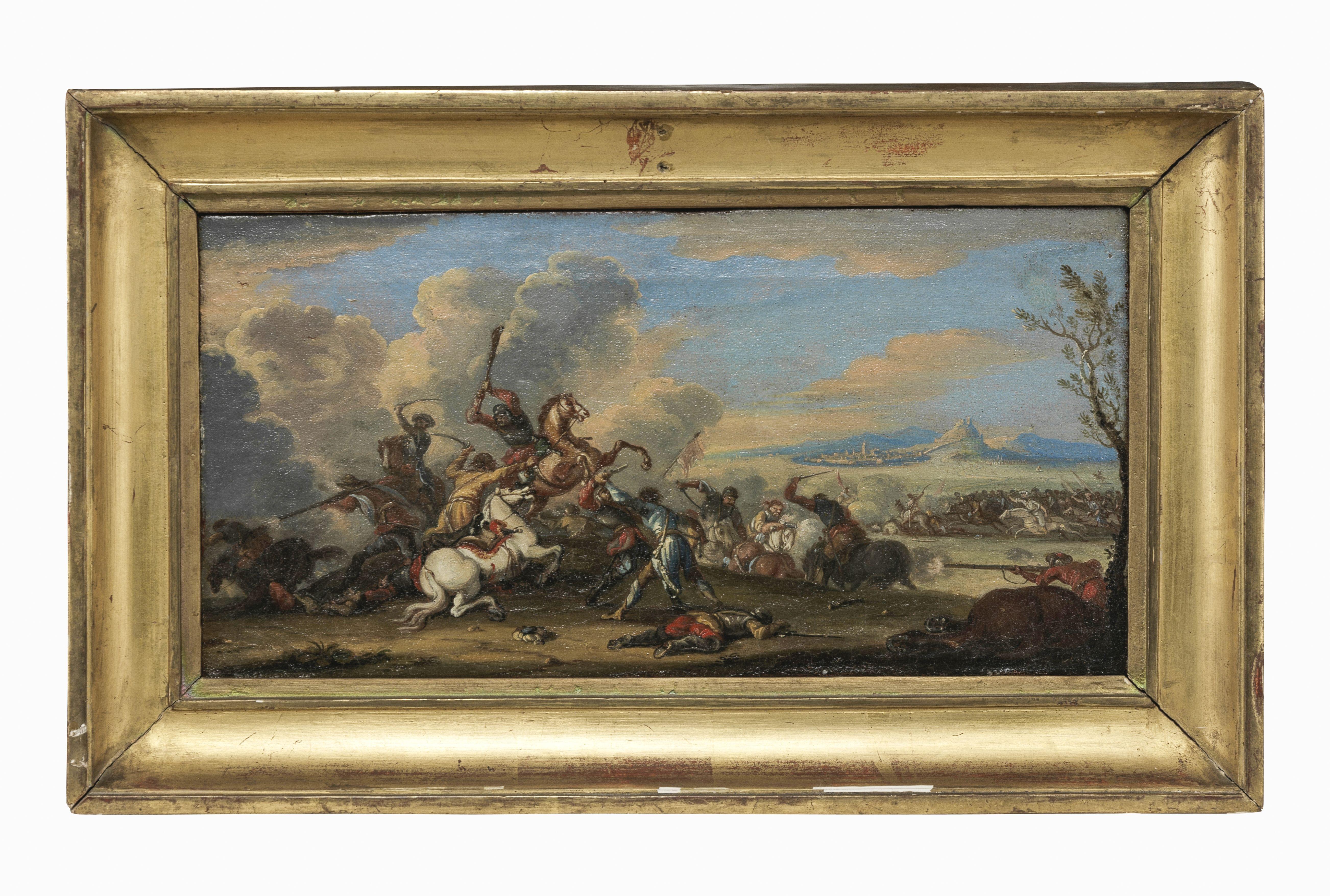 Brins en ivoire, à décor peint à la gouache de l'éruption du Vés...