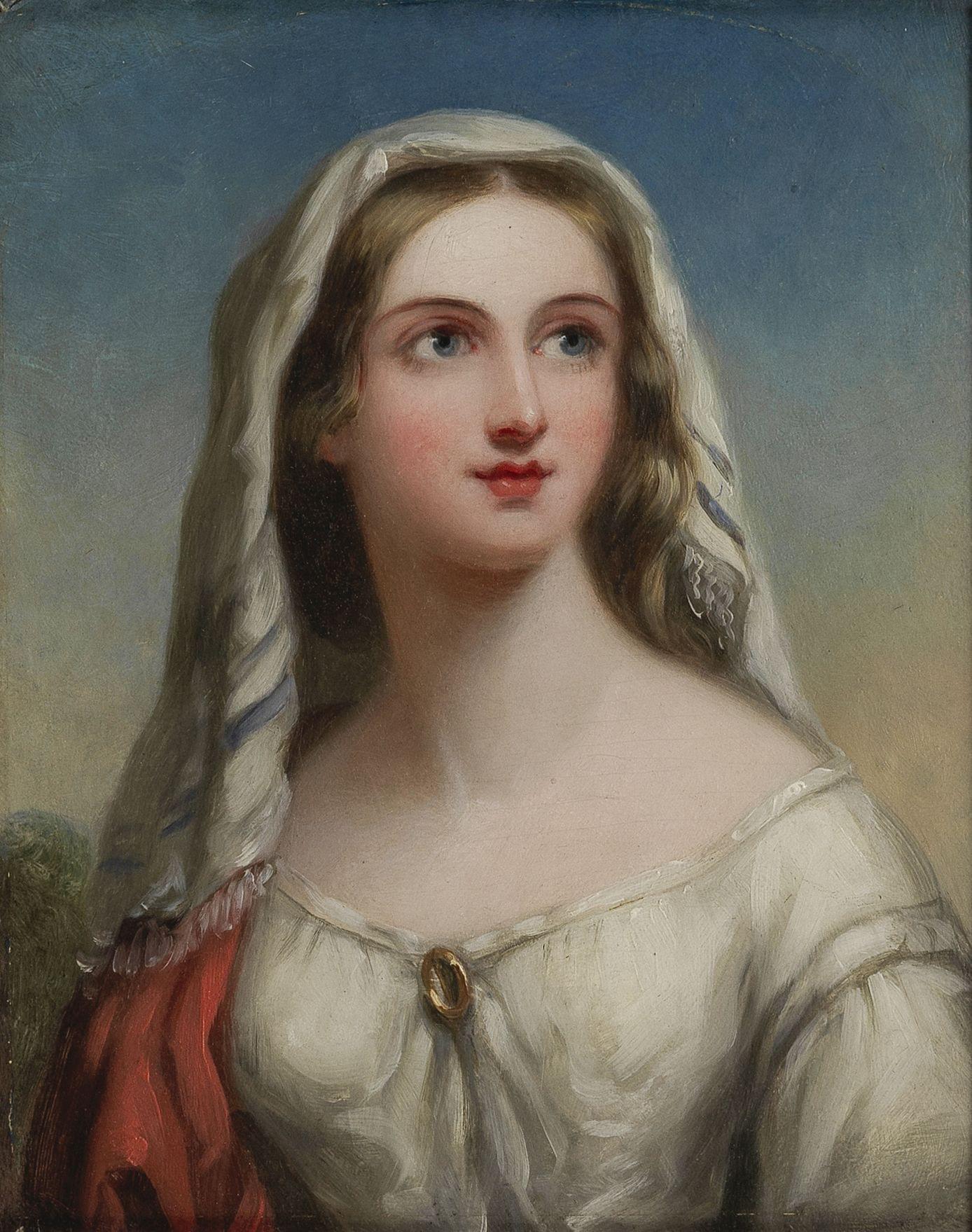 Jeune femme aux yeux bleus, huile sur carton, 23x19 cm