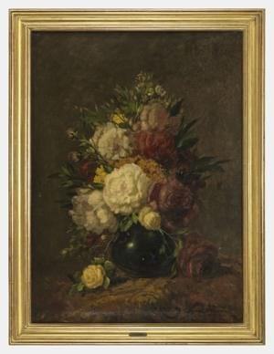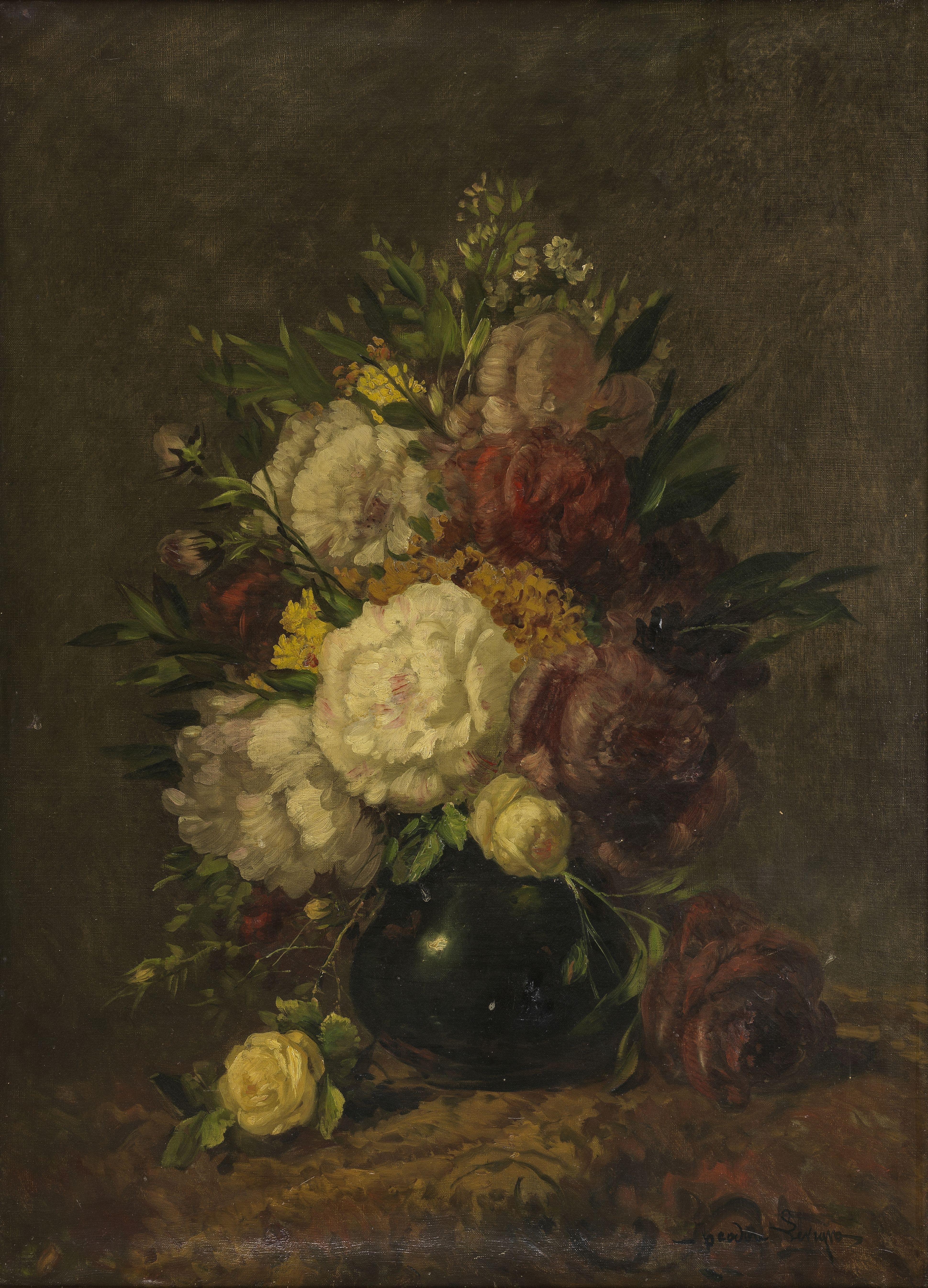 Vase de fleurs, huile sur toile, signée, 98x71 cm