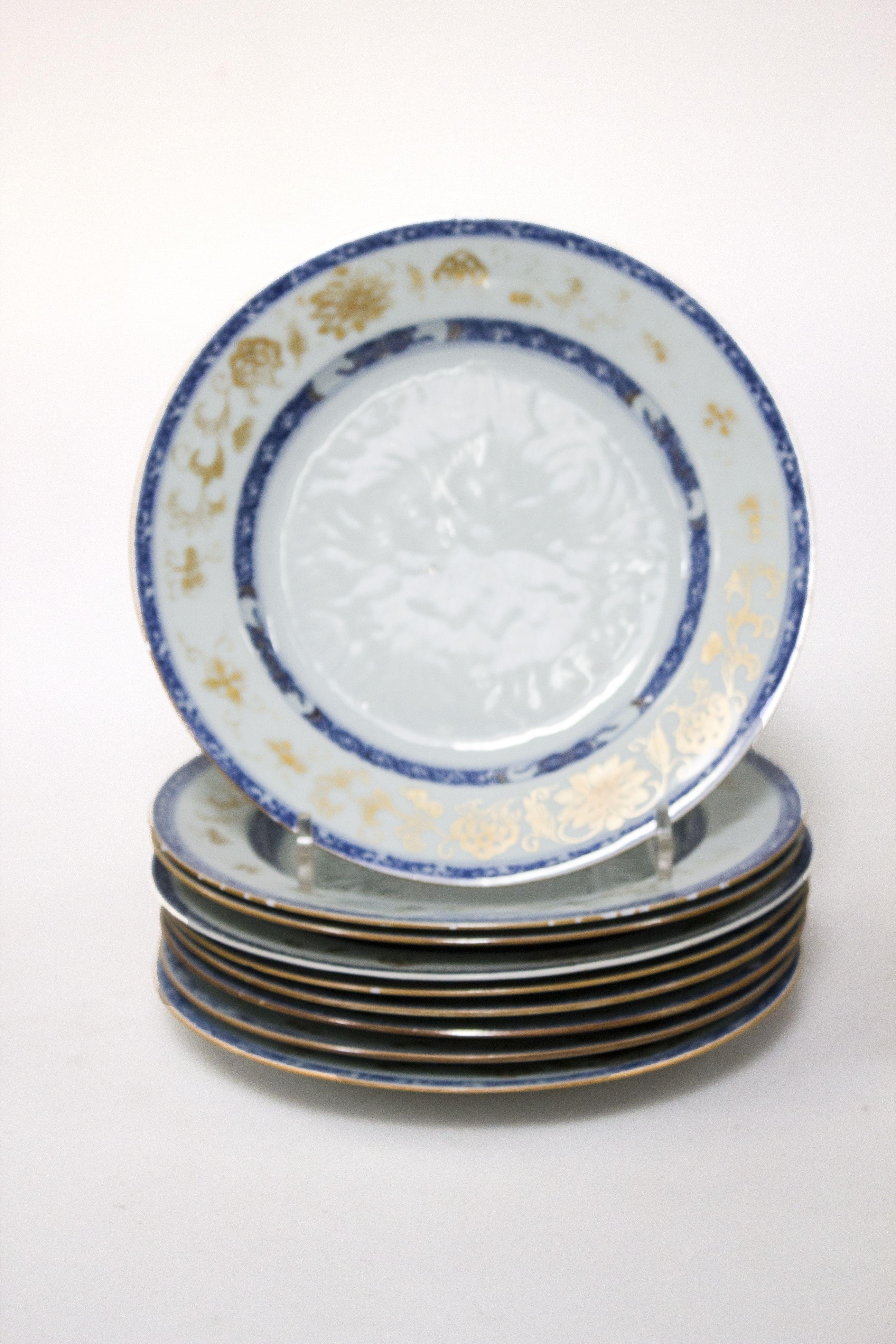 3370. 5 assiettes, Chine, Compagnie des Indes