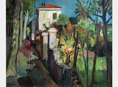 Promenade sous les arbres, huile sur toile, signée et datée 44,...