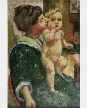 Dans la loge, huile sur toile, signée, 38x46 cm