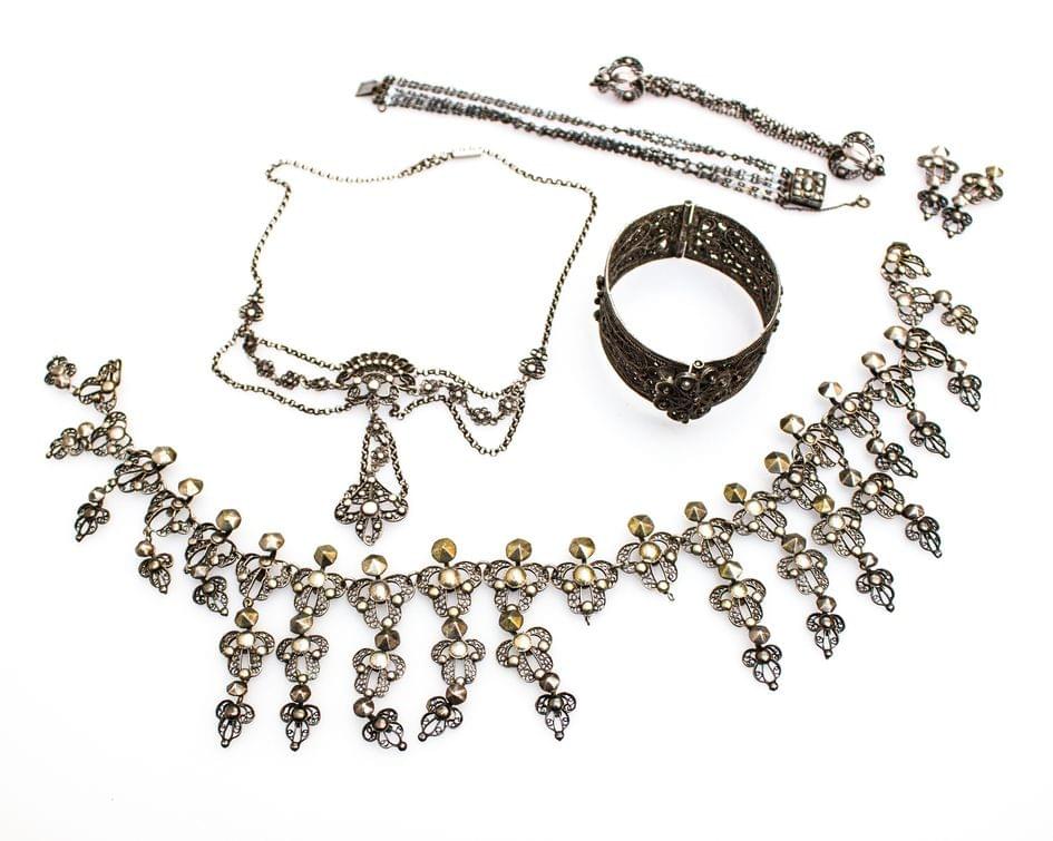 3070. Bracelet-ceinture et bague de style Art nouveau à décor de fleur...