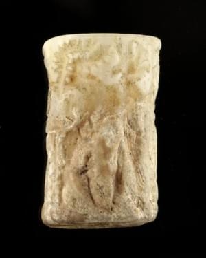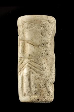 100. 5 sceaux-cylindres, calcaire, marbre et calcédoine rubanée, probablement dynastie archaïque, tardif, 2600-2340 av. JC