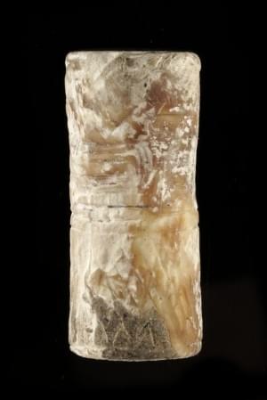 105. 5 sceaux-cylindres, coquillage schiste vert et calcaire noir, Akkad, 2340-2150 av. JC
