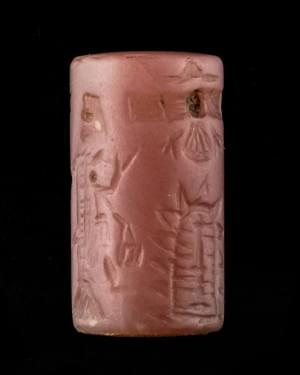 164. 5 sceaux-cylindres, diorite, marbre rose, quartz rose, améthyste et calcédoine, probablement néo-assyrien, 934-610 av. JC