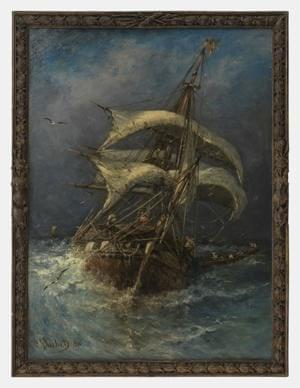 La tempête, huile sur toile, datée 80, 167x123 cm