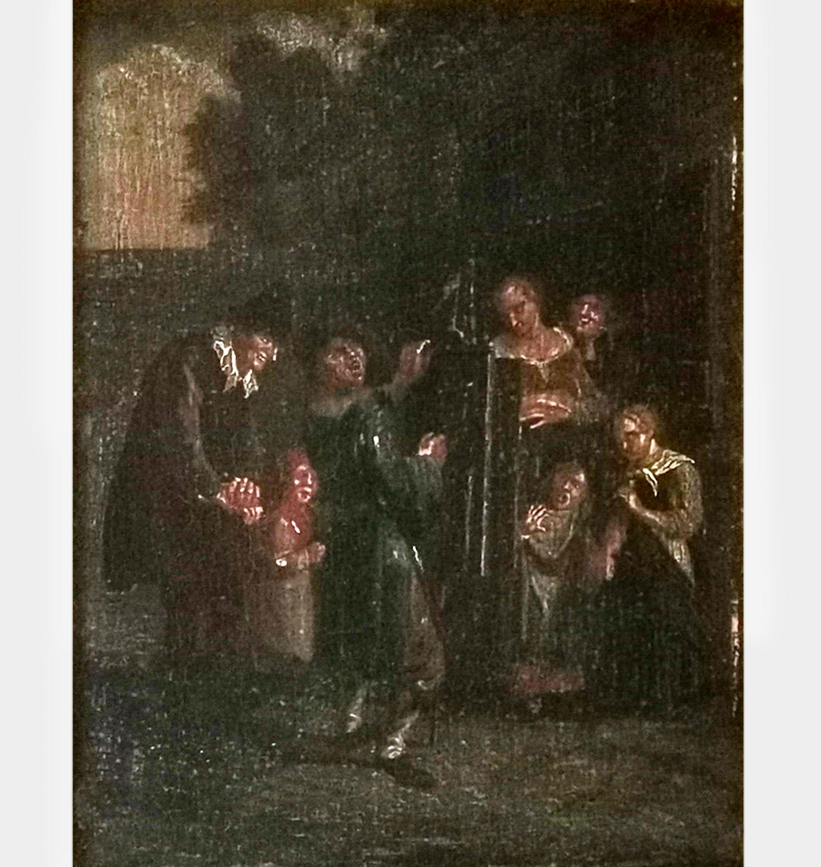 Le vendeur ambulant, huile sur panneau, 30x23 cm