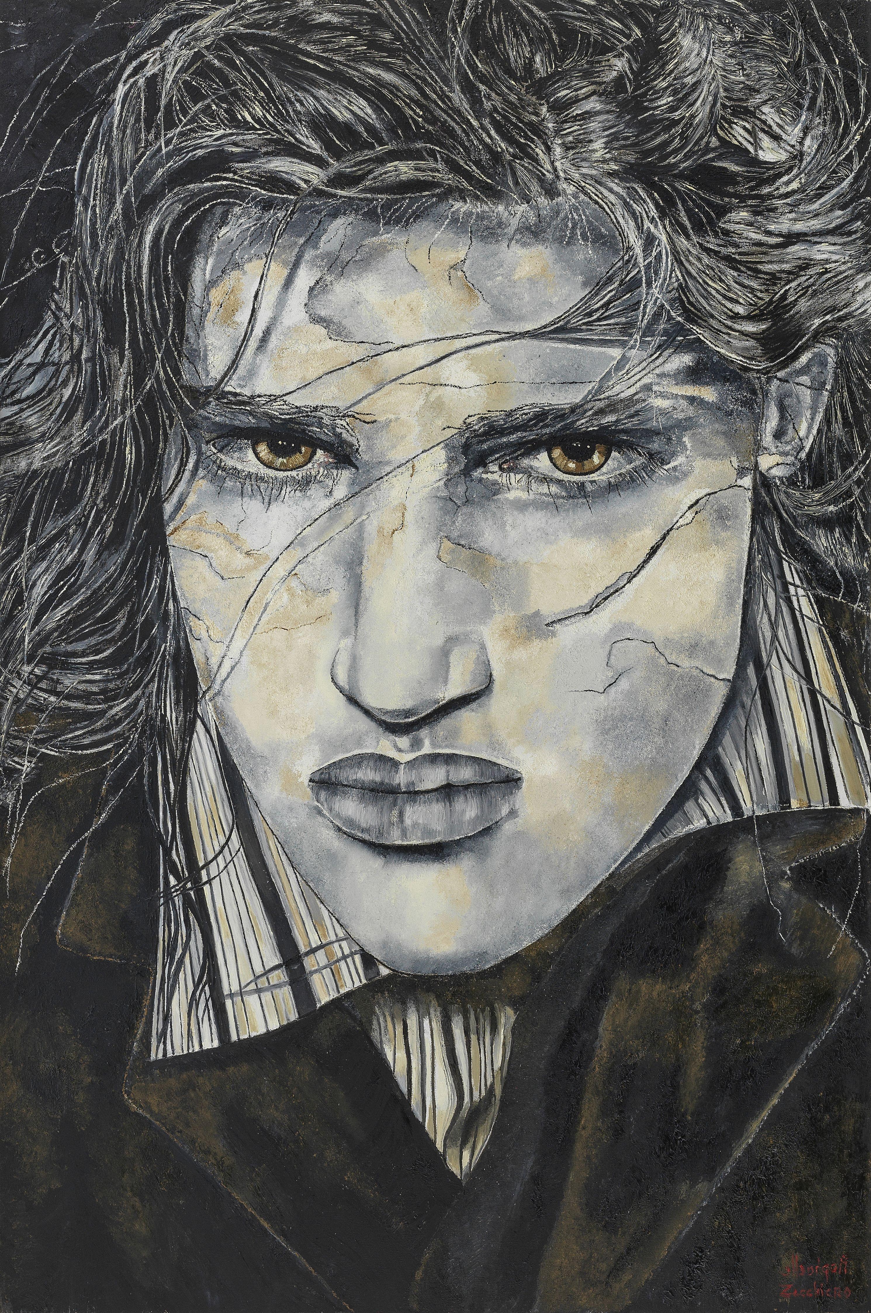 Visage féminin, huile sur toile, signée, 195x130 cm
