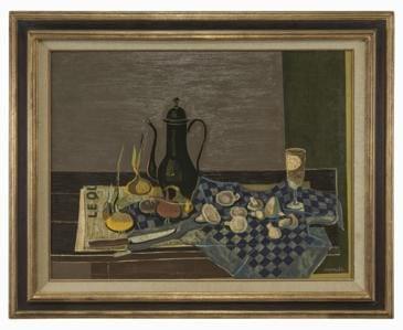 Rue de l'Epicerie à Rouen, huile sur toile, signée, 73x60 cm. Le...
