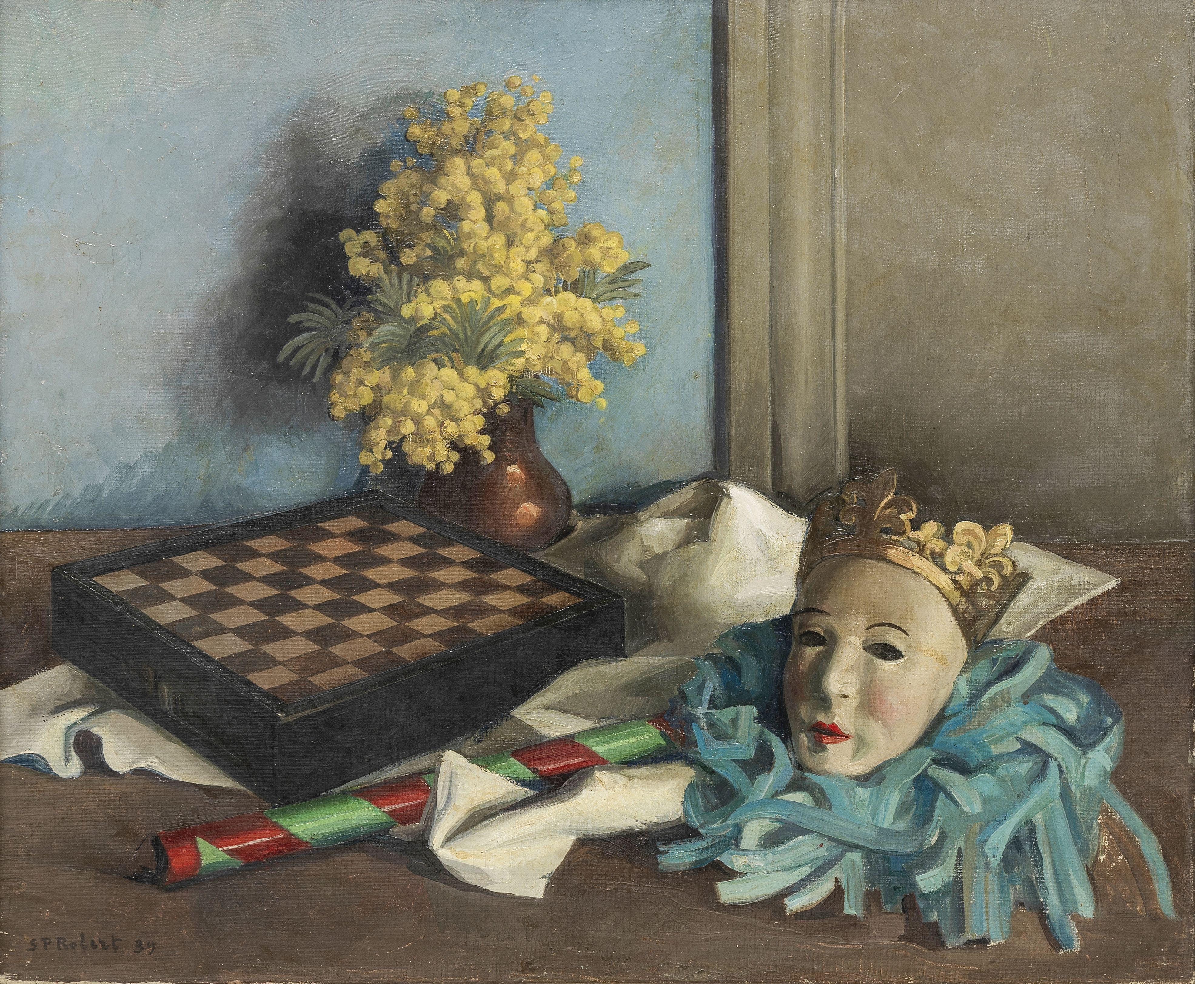 Chevreuil en bois de velours, bois gravé, Bonmont27.2.1945, sign...