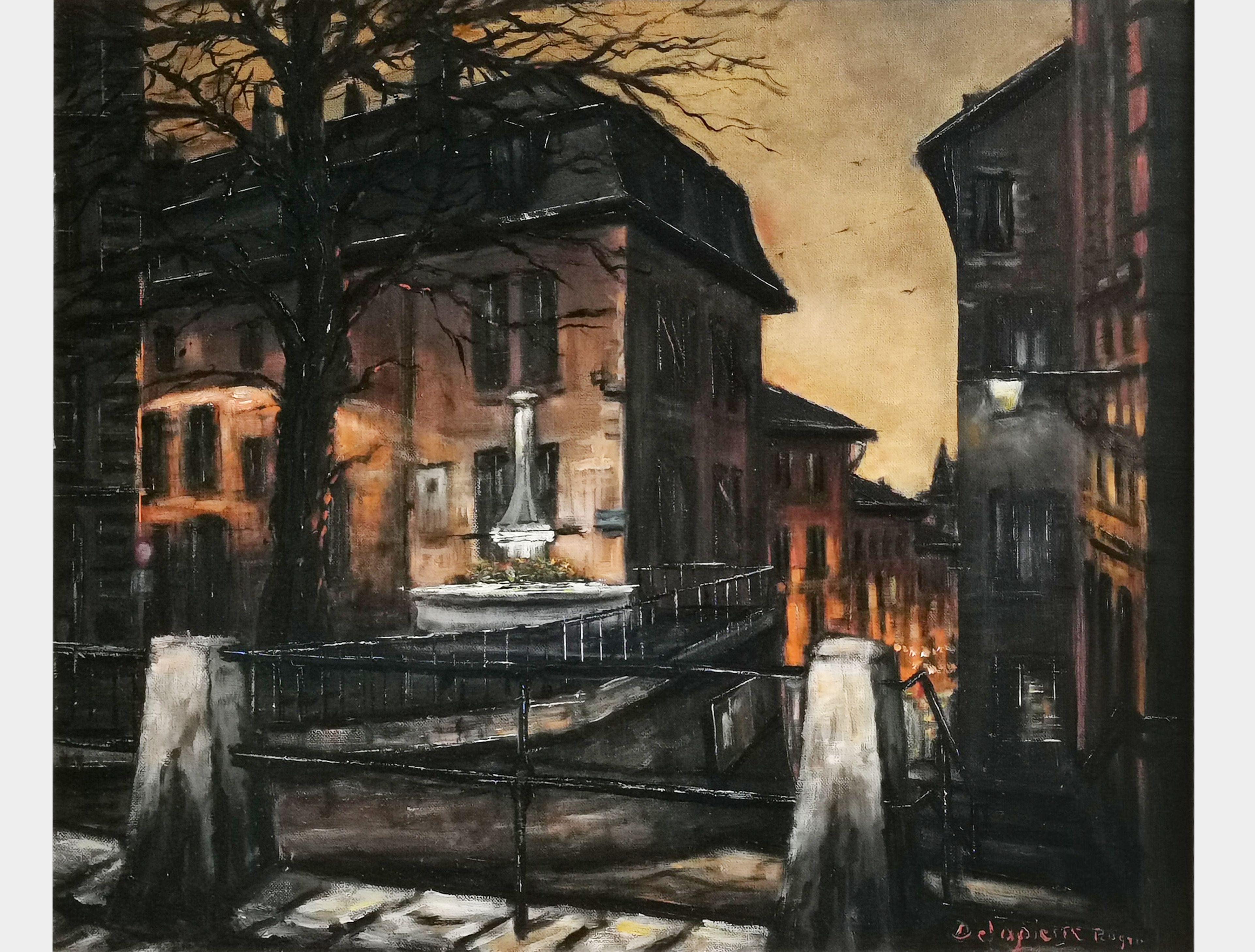 Rue de l'Epicerie à Rouen, huile sur toile, signée, 73x60 cm. Le...