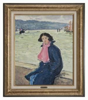 Femme à la lecture, huile sur toile, signée et datée 32, 44x38...