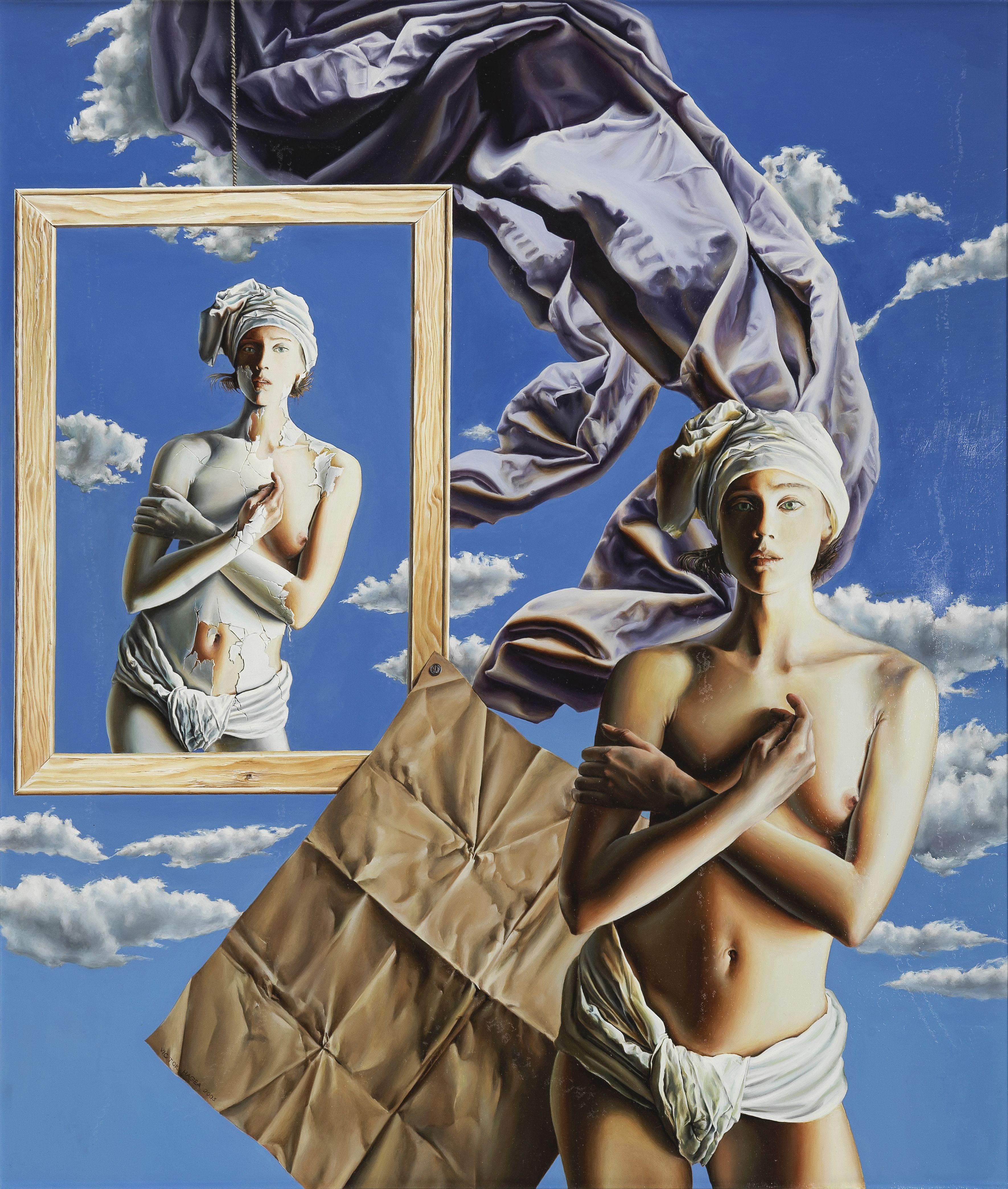 Eve ou l'amour en blanc, huile sur toile, signée, titrée et daté...