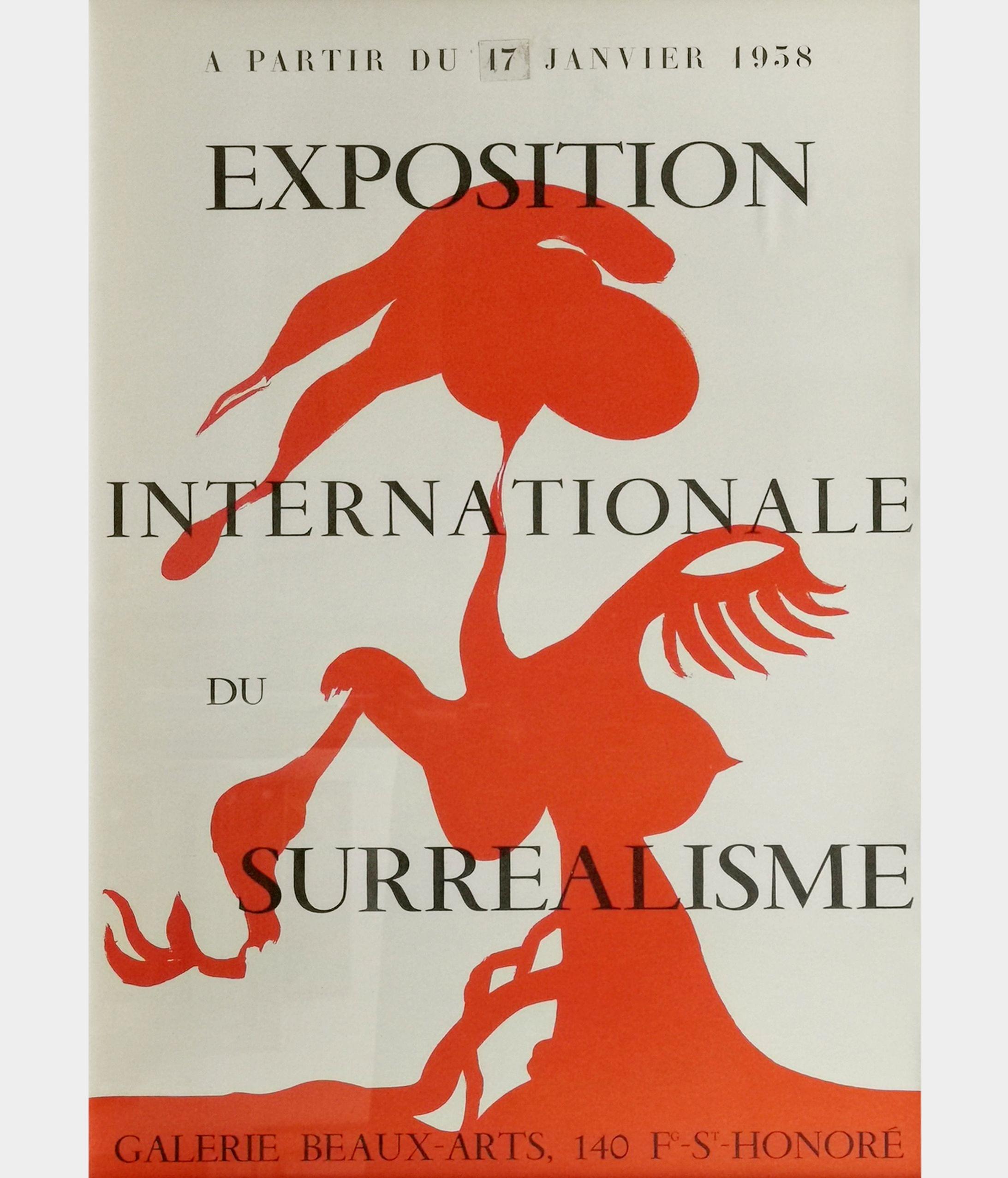 Affiche de l'Exposition Internationale du Surréalisme “à partir du 17 janvier 1938” à la Galerie des Beaux-Arts, 140 Fg St Honoré, 56x38 cm.Provenance: collection privée genevoise