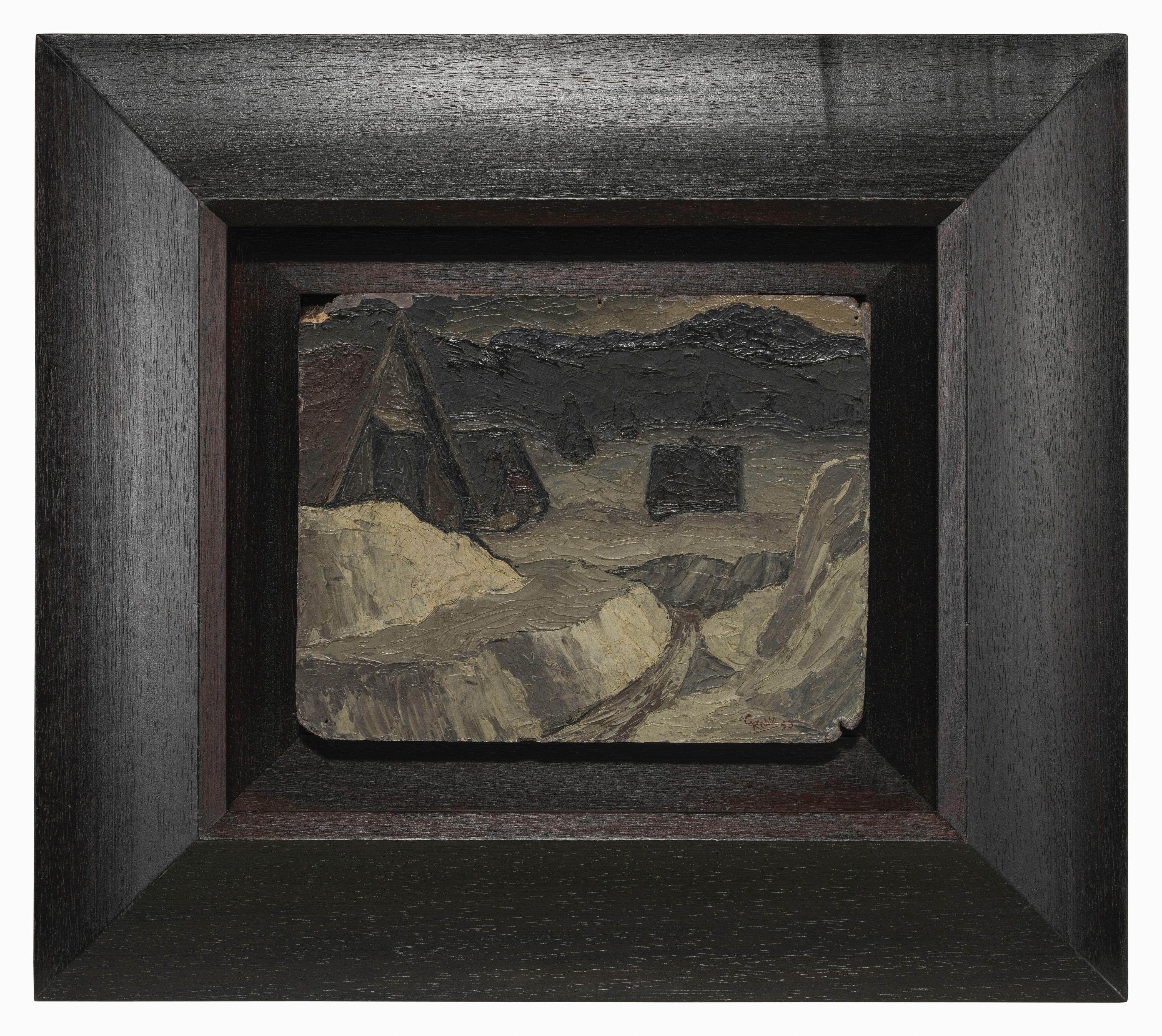 Paysage d'hiver, huile sur pavatex, signée et datée 53, 21x27 cm