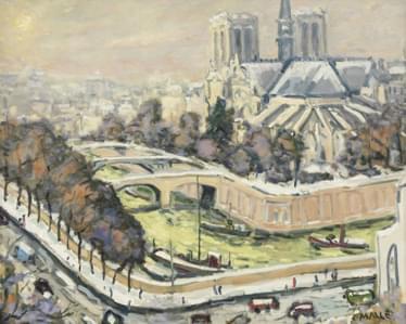 Paris, la Seine, Pont de la Tournelle, huile sur toile, signée,...