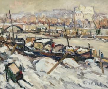 En amont du pont d'Austerlitz, huile sur toile, signée, 50x61 cm