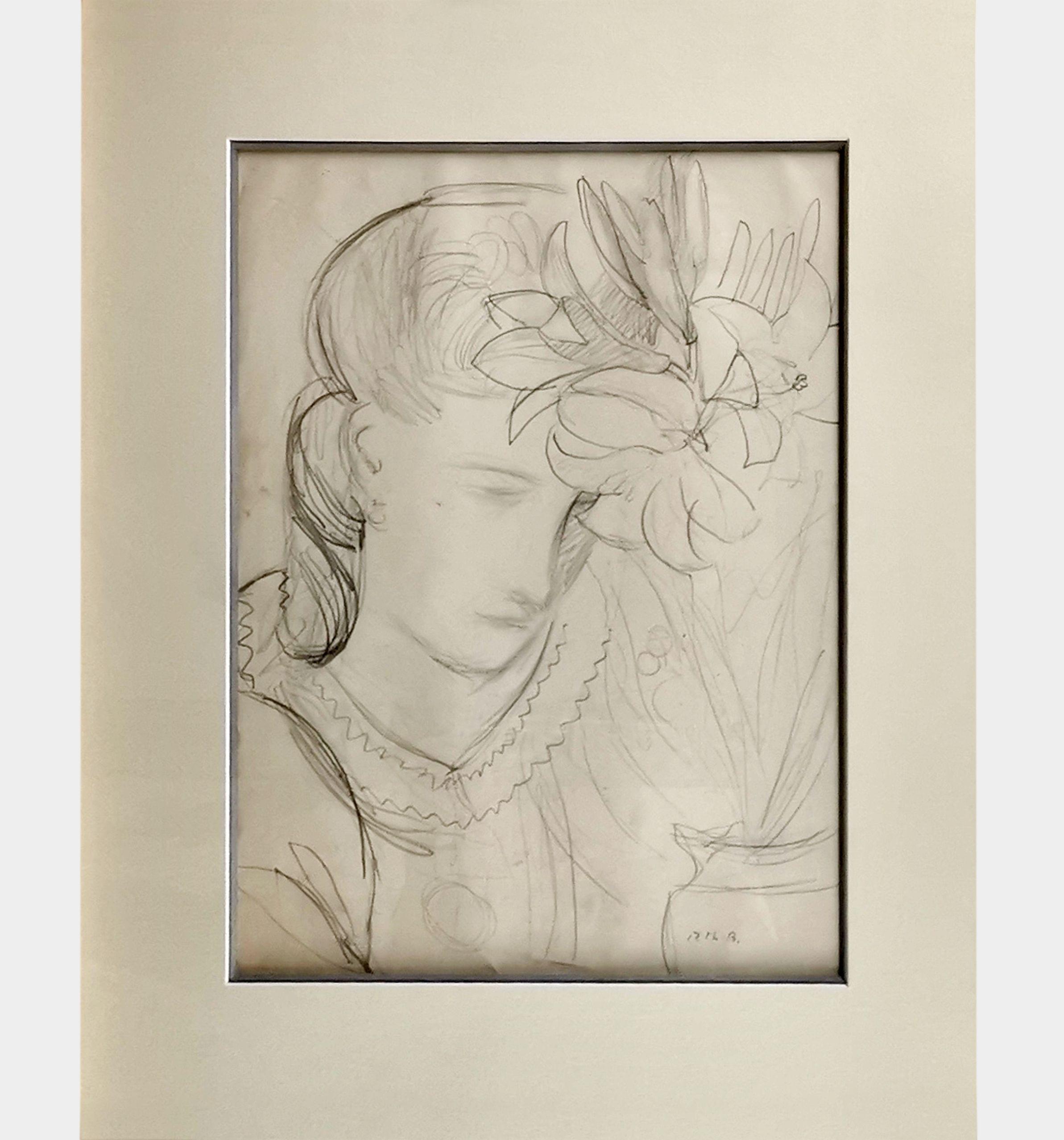 Buste de femme, mine de plomb sur papier, monogrammée, 39x29 cm