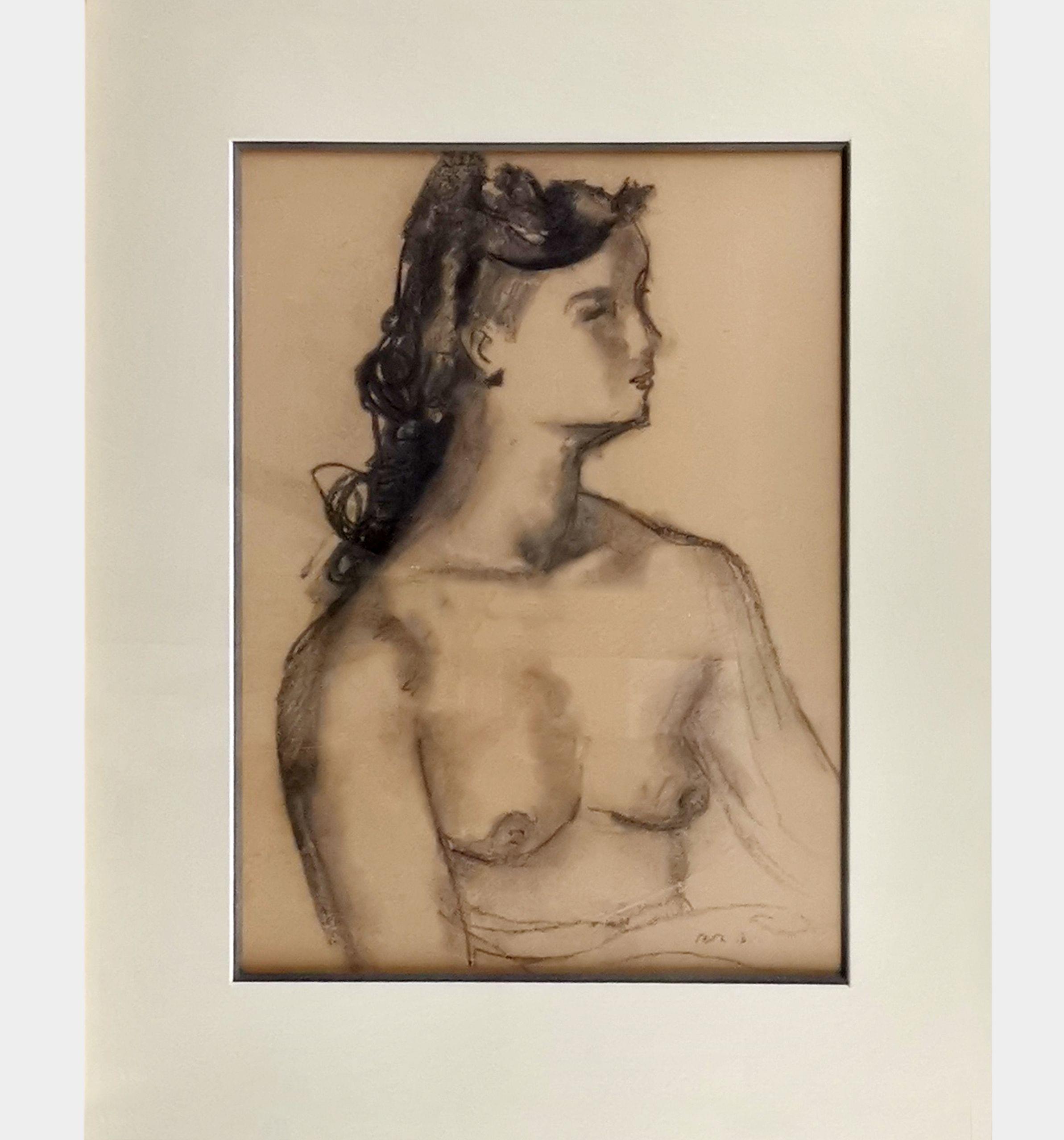 Femme aux fleurs, mine de plomb sur papier, monogrammée, 38x30 c...