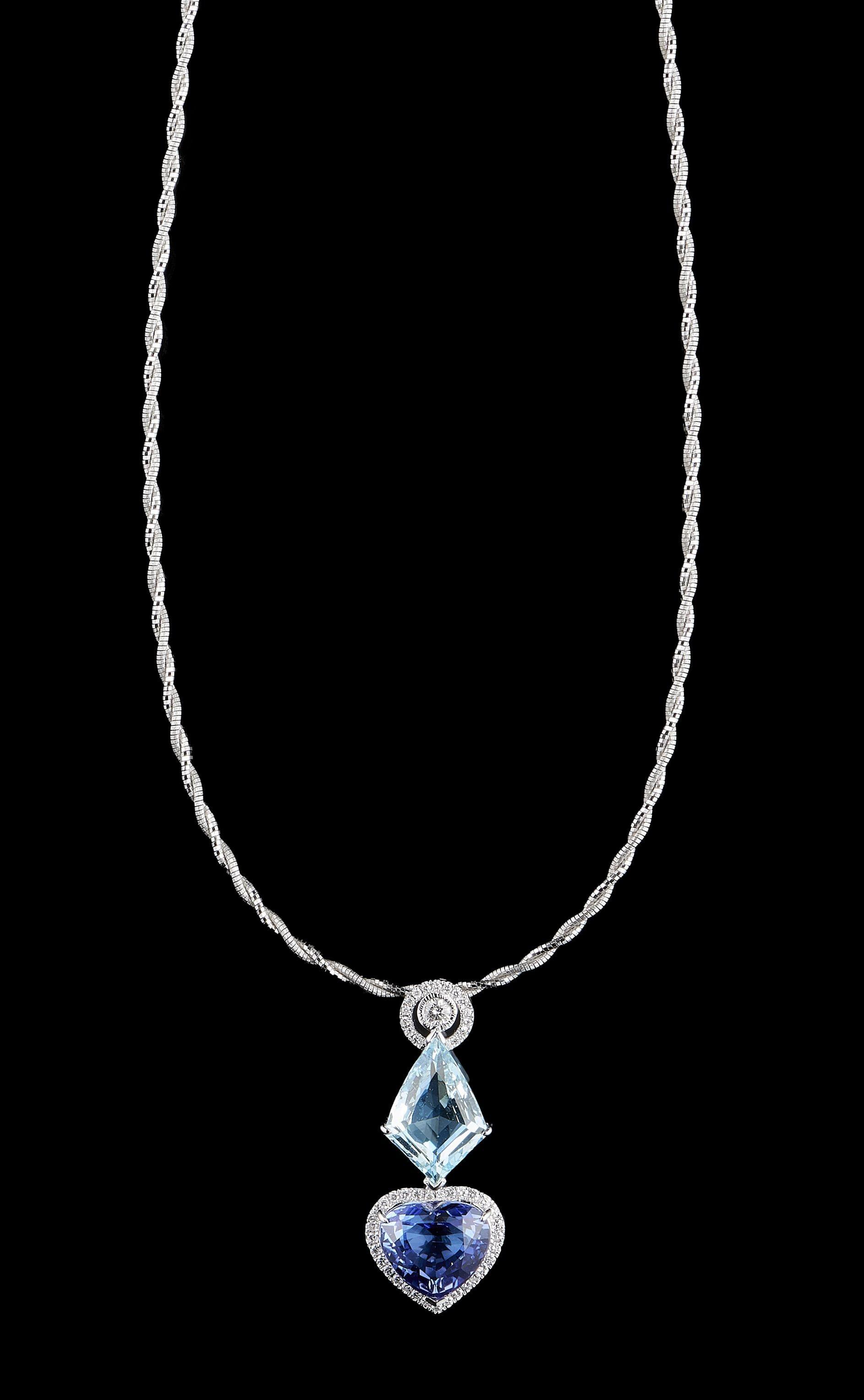 955. 5463*Collier torsadé retenant un pendentif serti d'une tanzanite taille cœur (env. 10,3 ct)