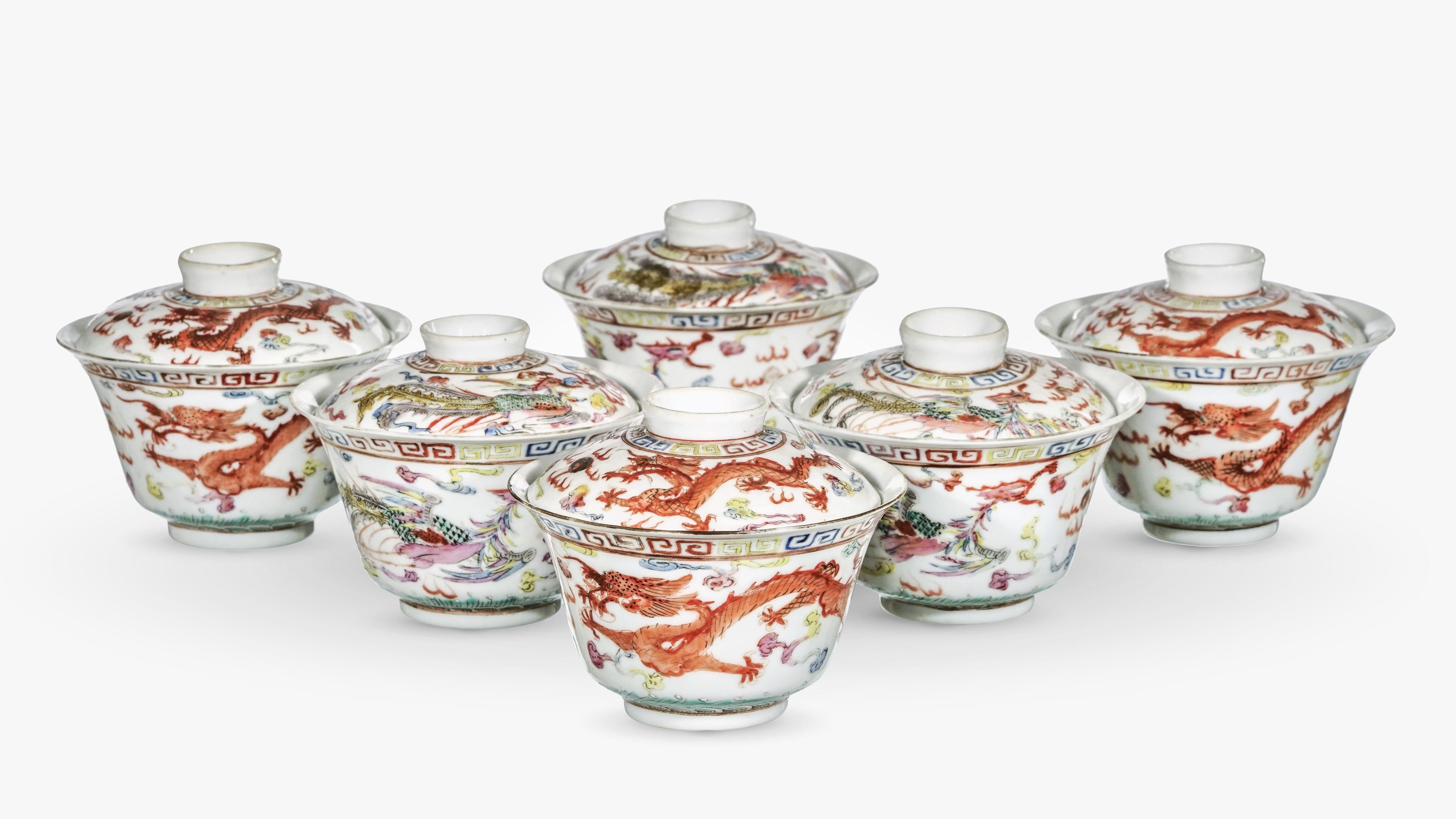251. 6 bols et soucoupes, Chine, marque et période Guangxu (1875-1908)