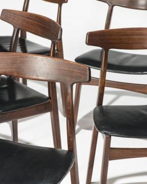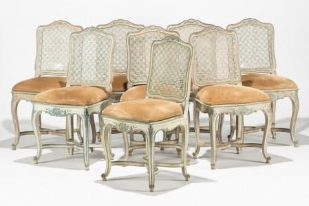 Bois laqué gris rechampi blanc, assises en veau retourné