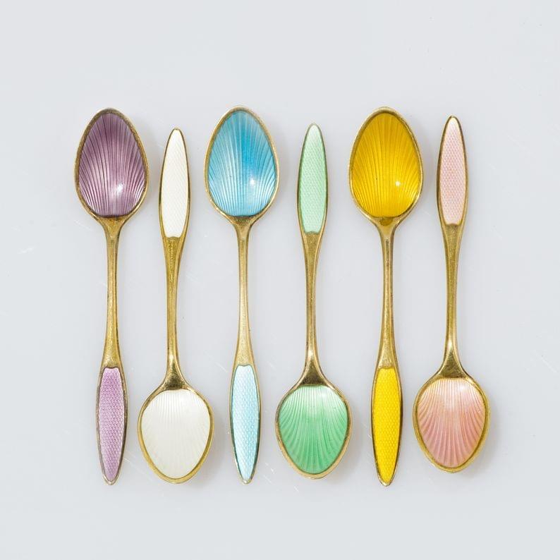 3285. Service à motif de rameaux dorés comprenant : 6 tasses à thé, 6...