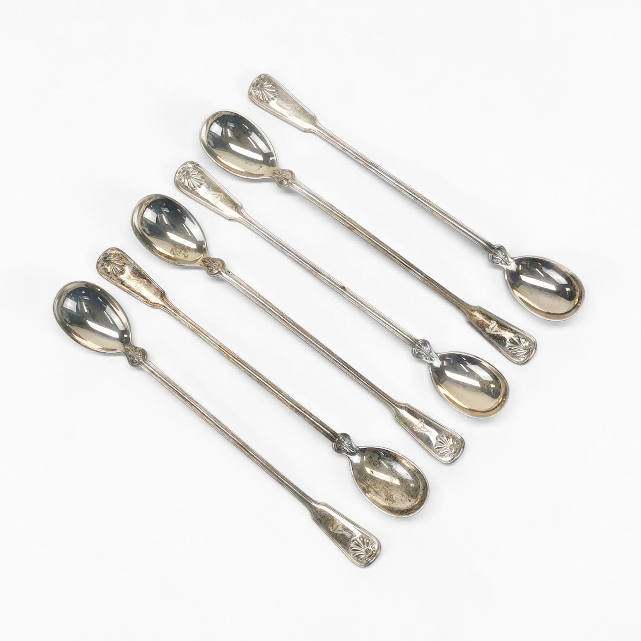 3766. Suite de 6 cuillères à thé et pince à sucre armoriées
