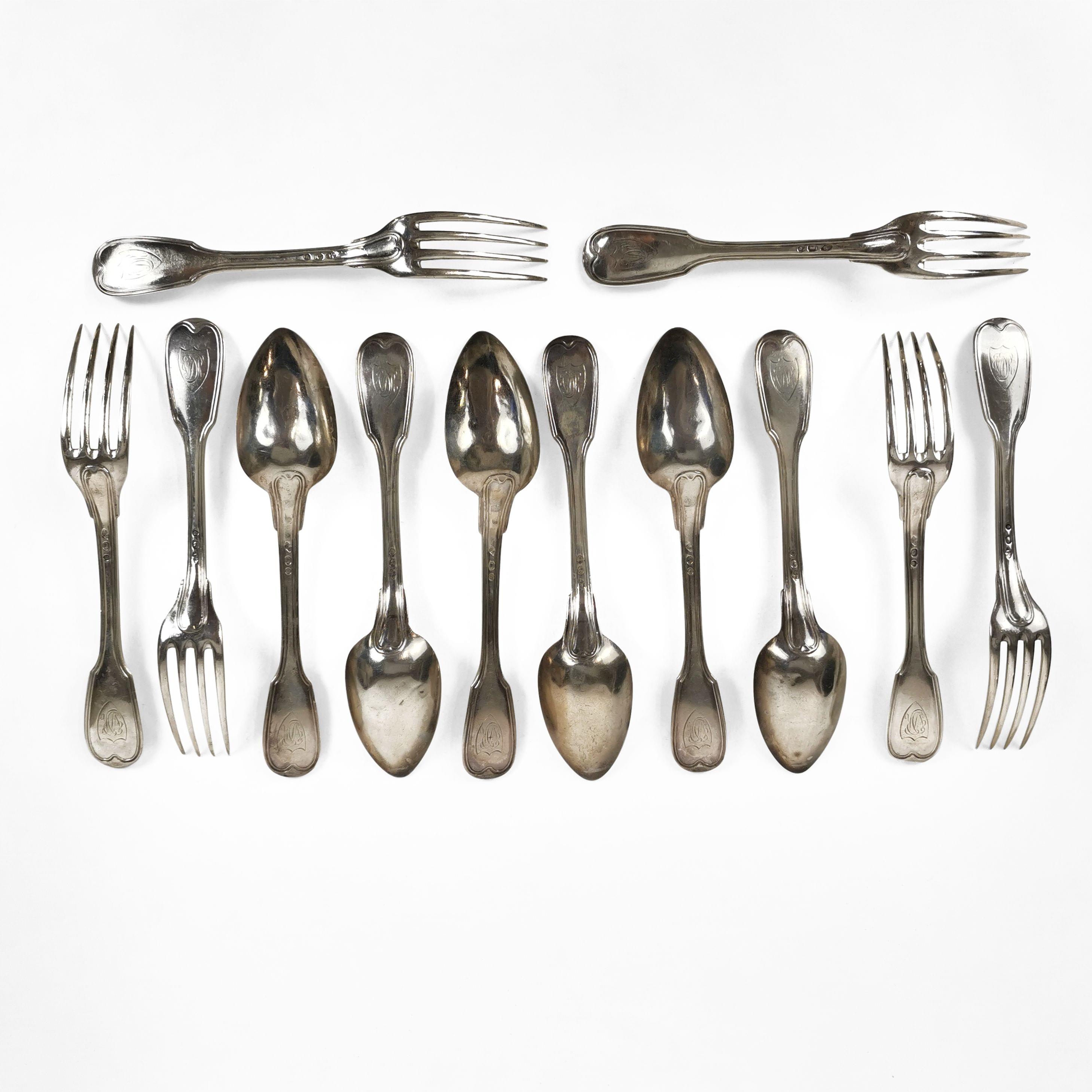 3697. 6 fourchettes et 6 cuillères d'époque Empire