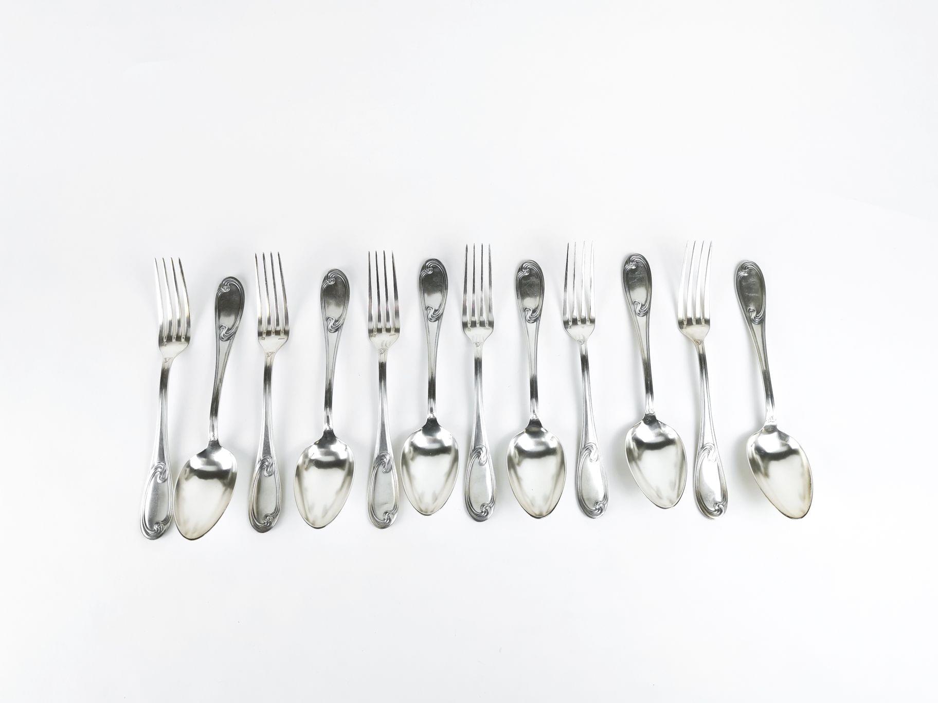 4573. 6 fourchettes et 6 cuillères de style Art nouveau,