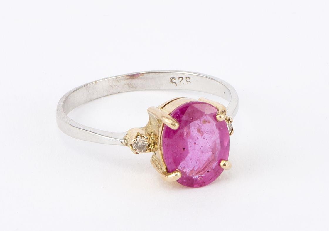 3229. 6216*Bague sertie d'un saphir rose taille ovale (env. 1,5 ct) épaulé de petits diamants