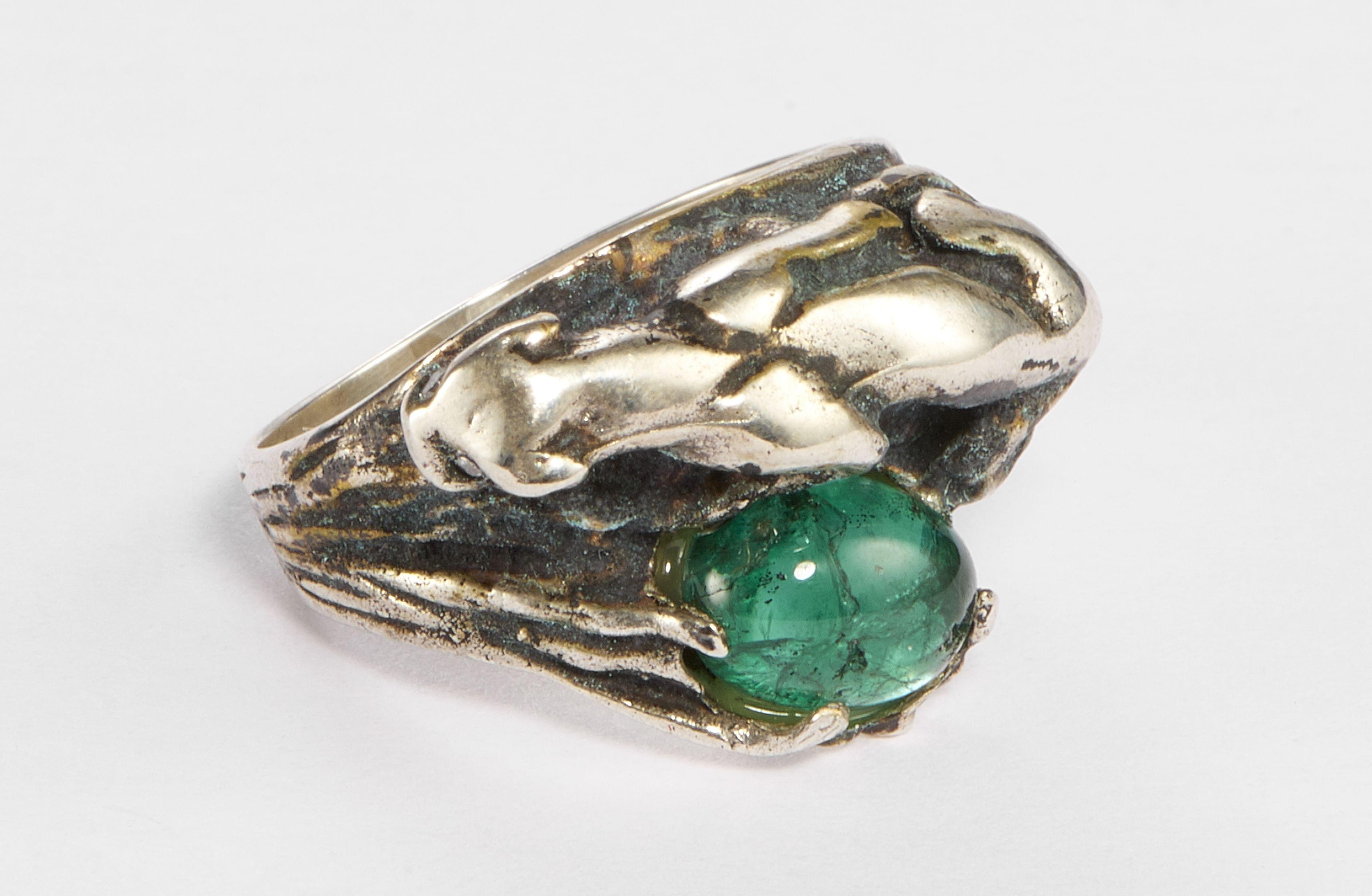 3151. 6310*Bague à motif de panthère rehaussée d'une émeraude taille cabochon