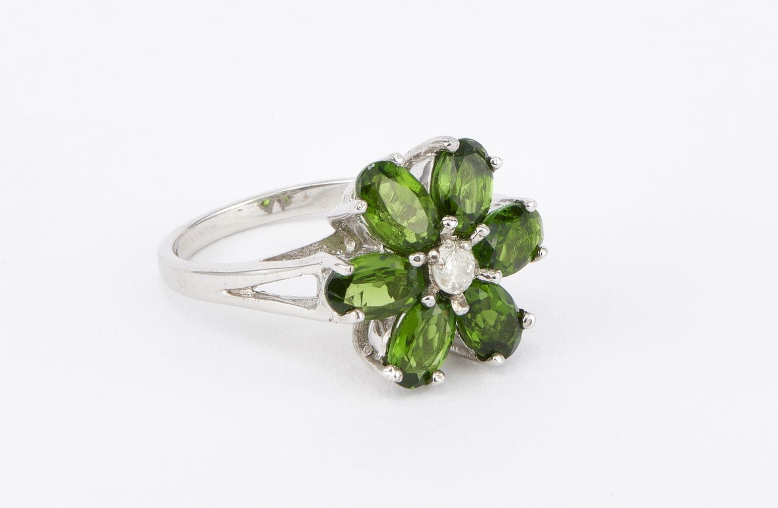 100. Bague sertie d'un saphir épaulé de deux diamants taille ancienne