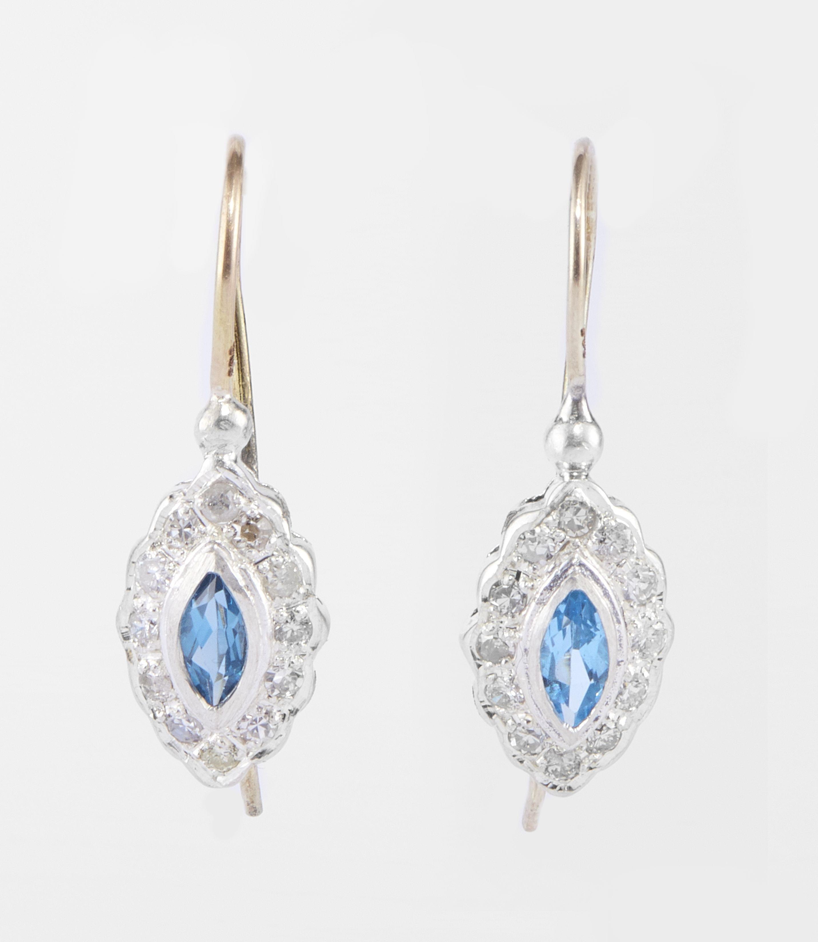 3201. 6352*Boucles d'oreilles centrées de topazes bleues taille marquise entourées de diamants