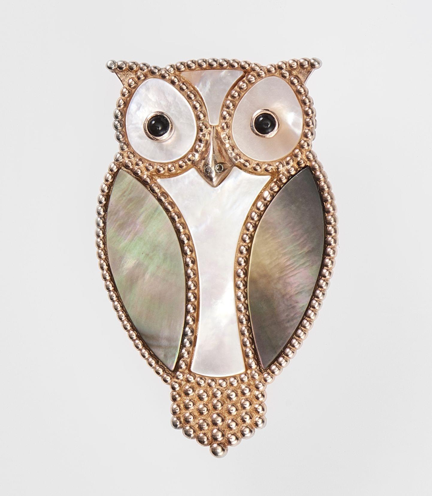 3305. *6633 Broche à motif de chouette sertie de nacre et aux yeux en onyx