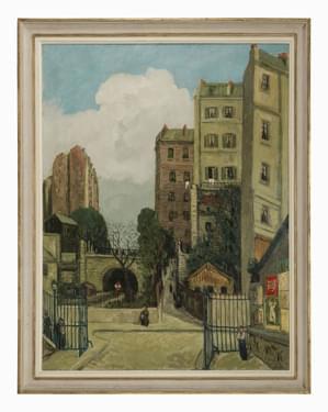 Hôtel particulier, huile sur pavatex, signée, 37x46 cm