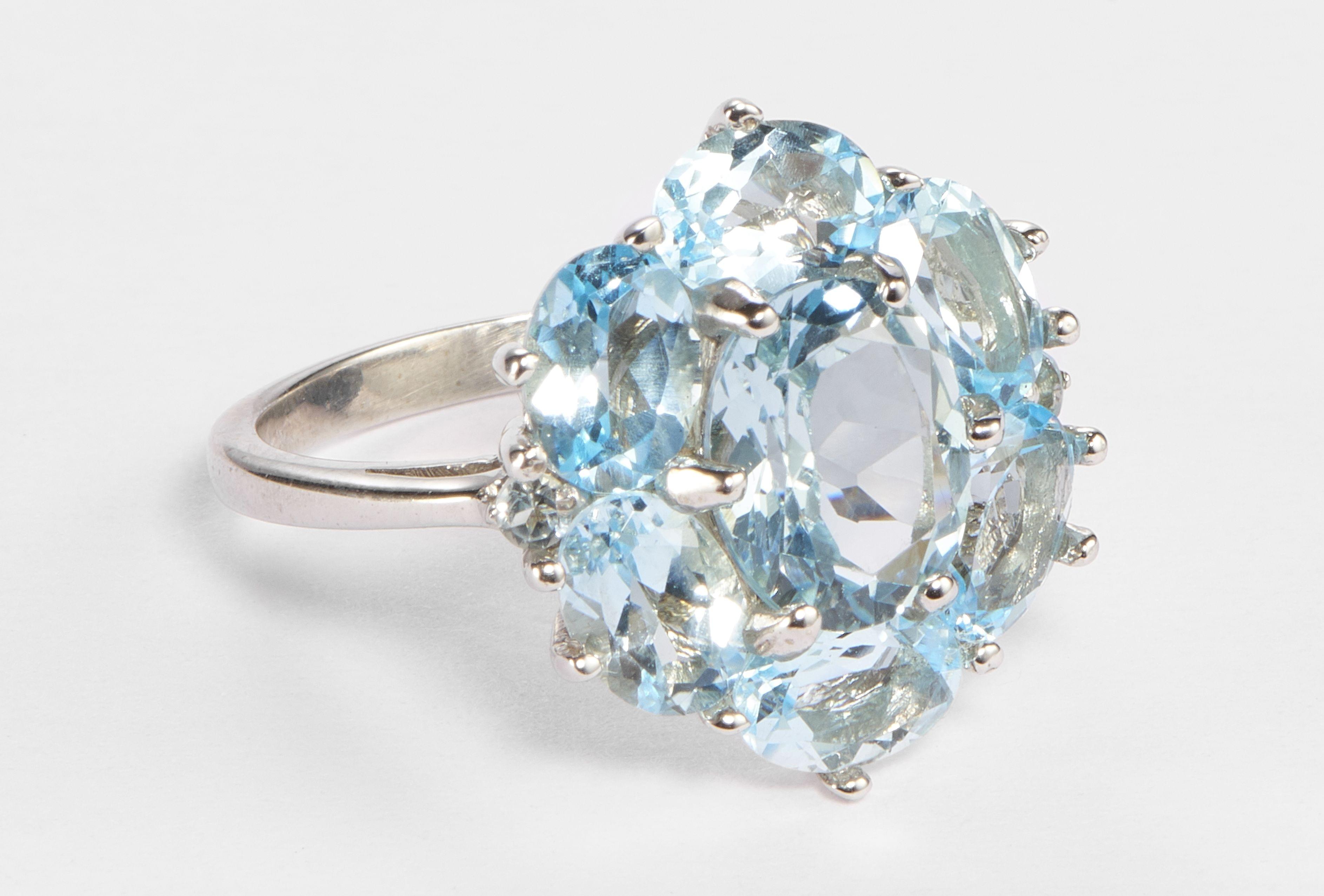 3150. 6936*Bague fleur sertie de topazes bleues taille ovale (env. 6 ct)