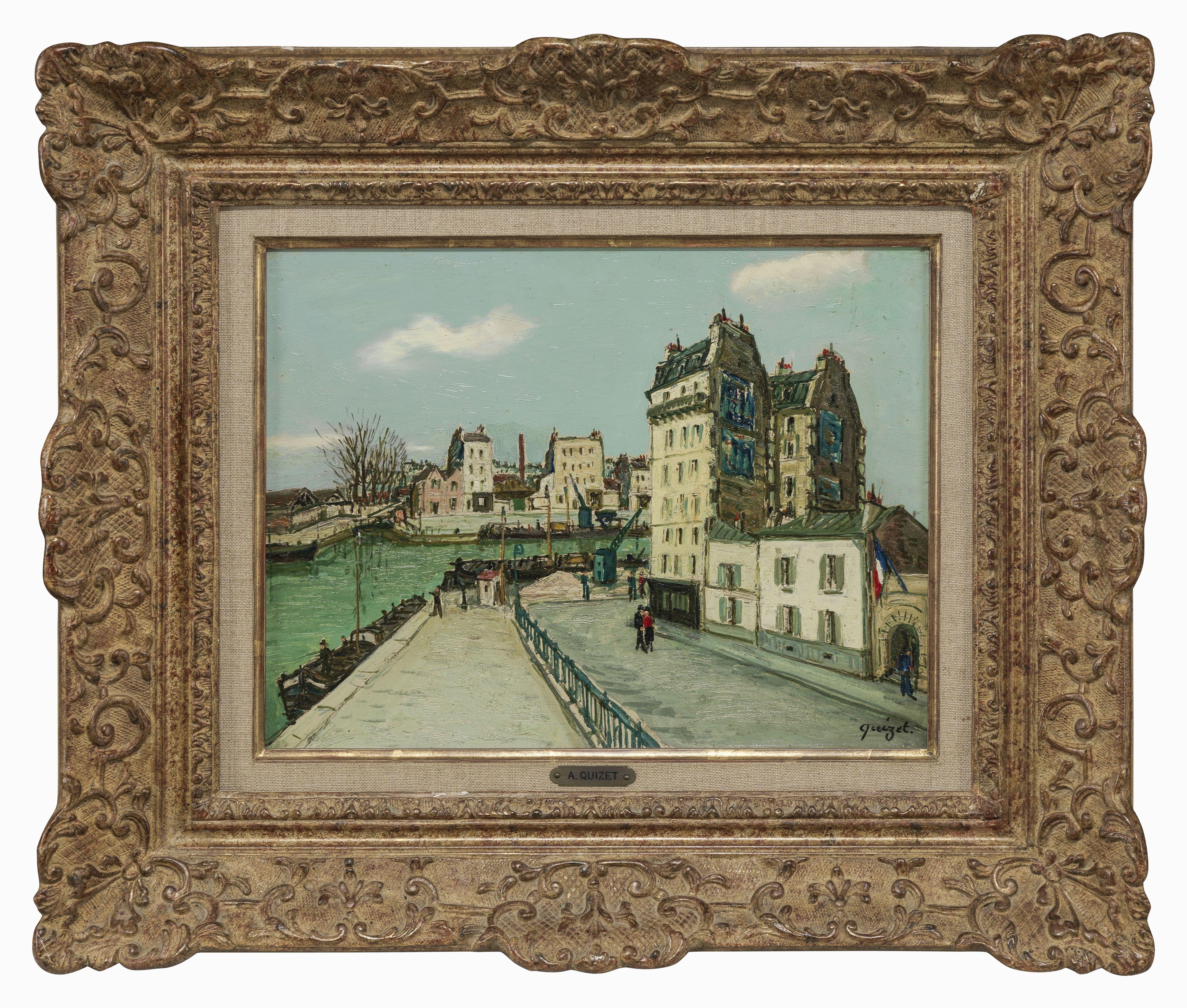 Canal de la Villette, huile sur panneau, signée, 18x23 cm