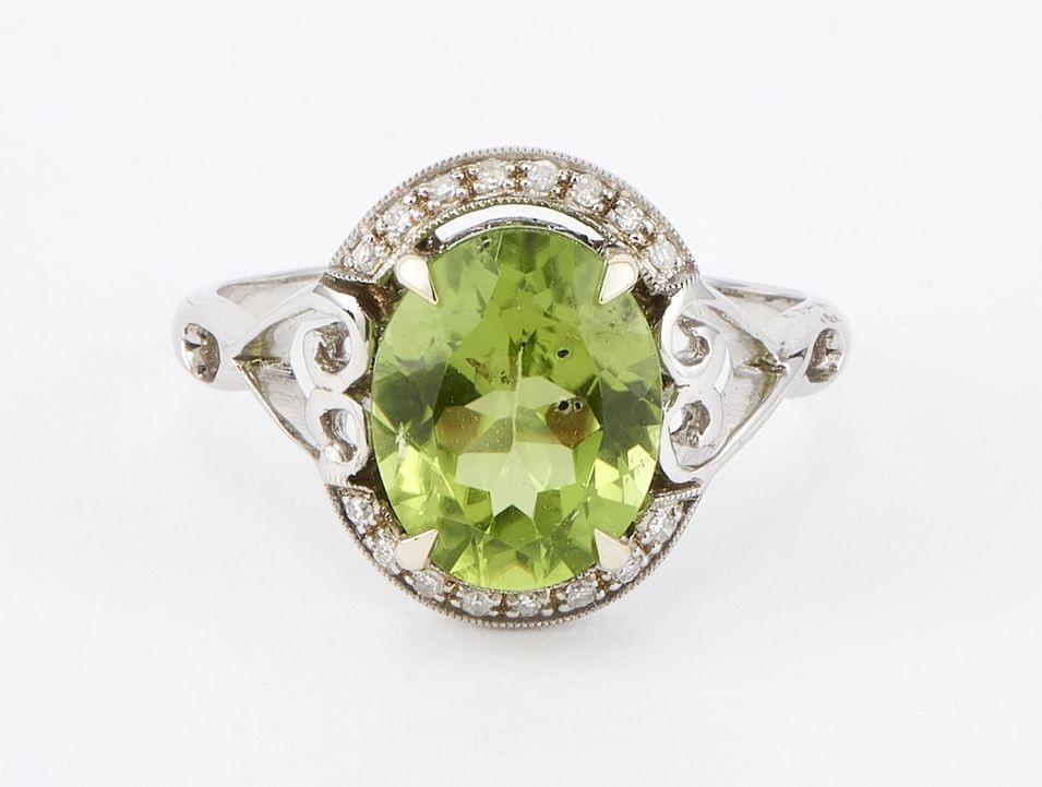 3296. 7111*Bague sertie d'un péridot taille ovale (env. 2,7 ct) entouré de diamants