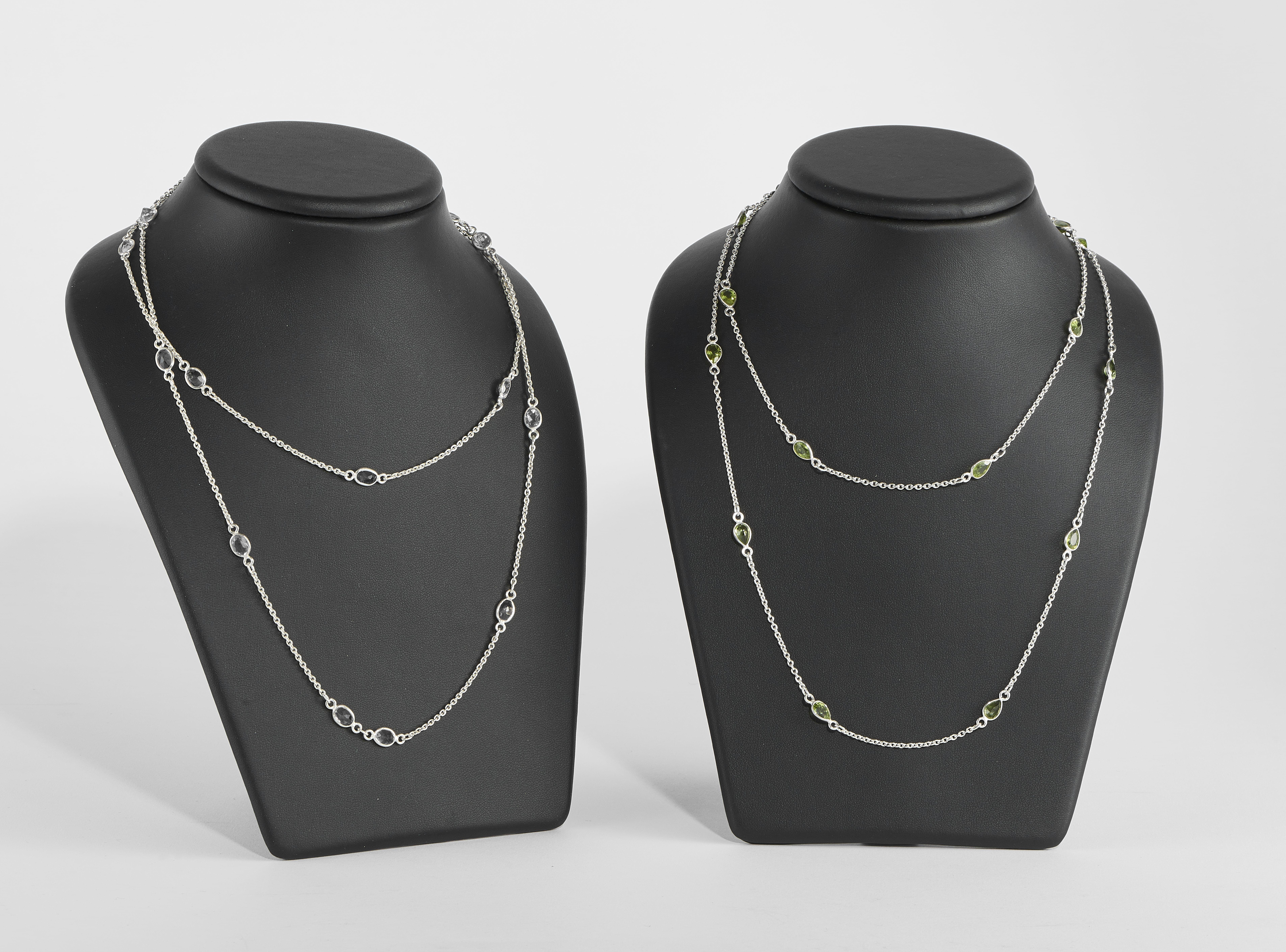 38. Boutons de manchette sertis d'une ligne de topazes bleues taille...