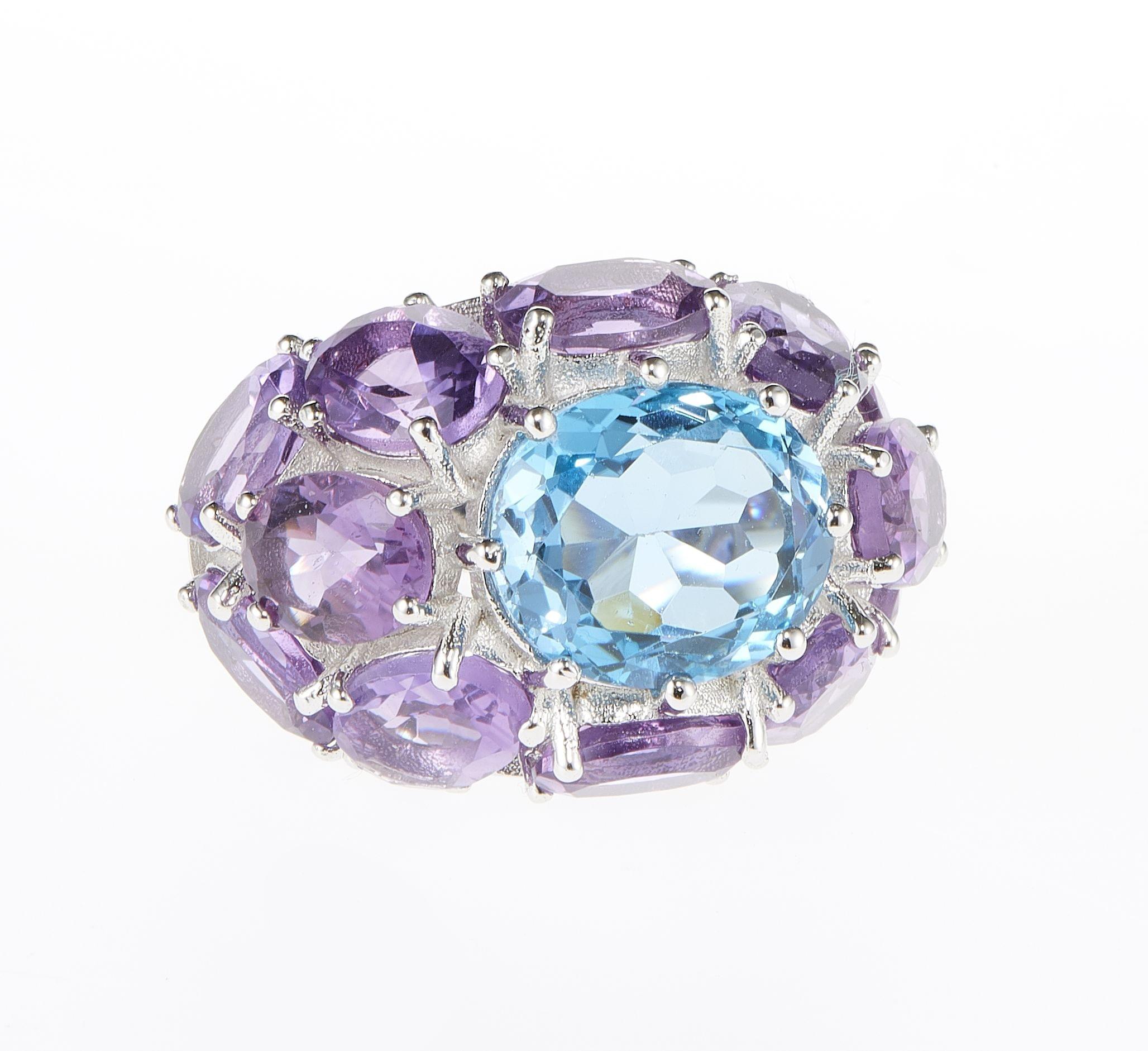 4266. 7256 -*Bague dôme centrée d'une topaze bleue taille ovale (env. 5,5 ct) dans un pavage d'améthystes taille ovale (env. 12 ct)