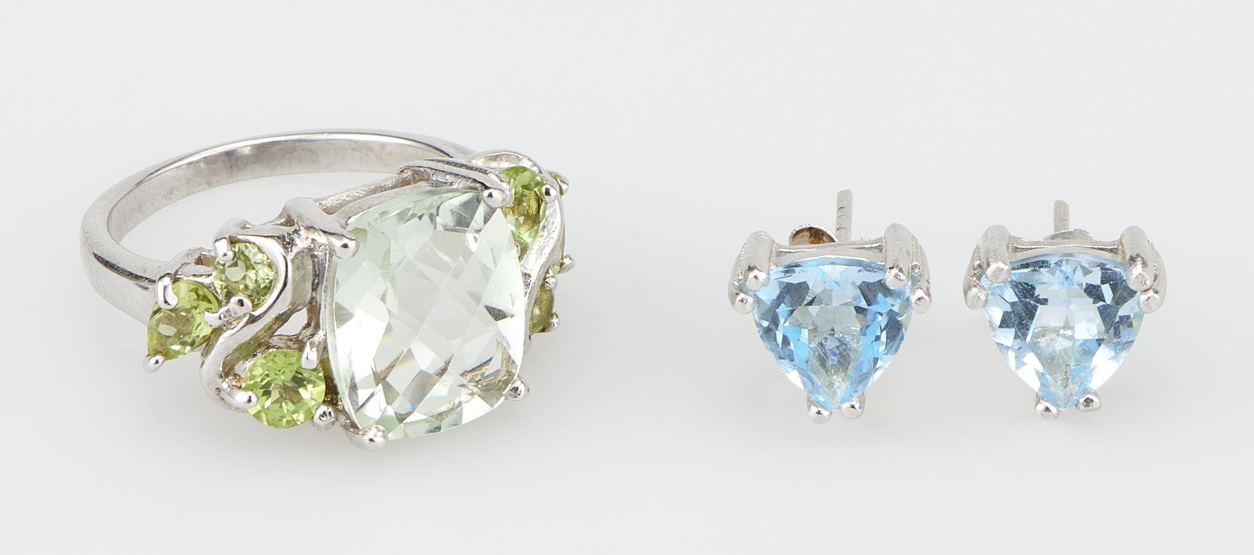 Argent 925, doigt 55-15. On joint des clous d'oreilles sertis de topazes bleues taille troïda en argent 925.