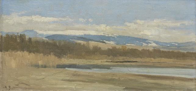Paysage animé de vaches, huile sur carton marouflée sur toile, c...