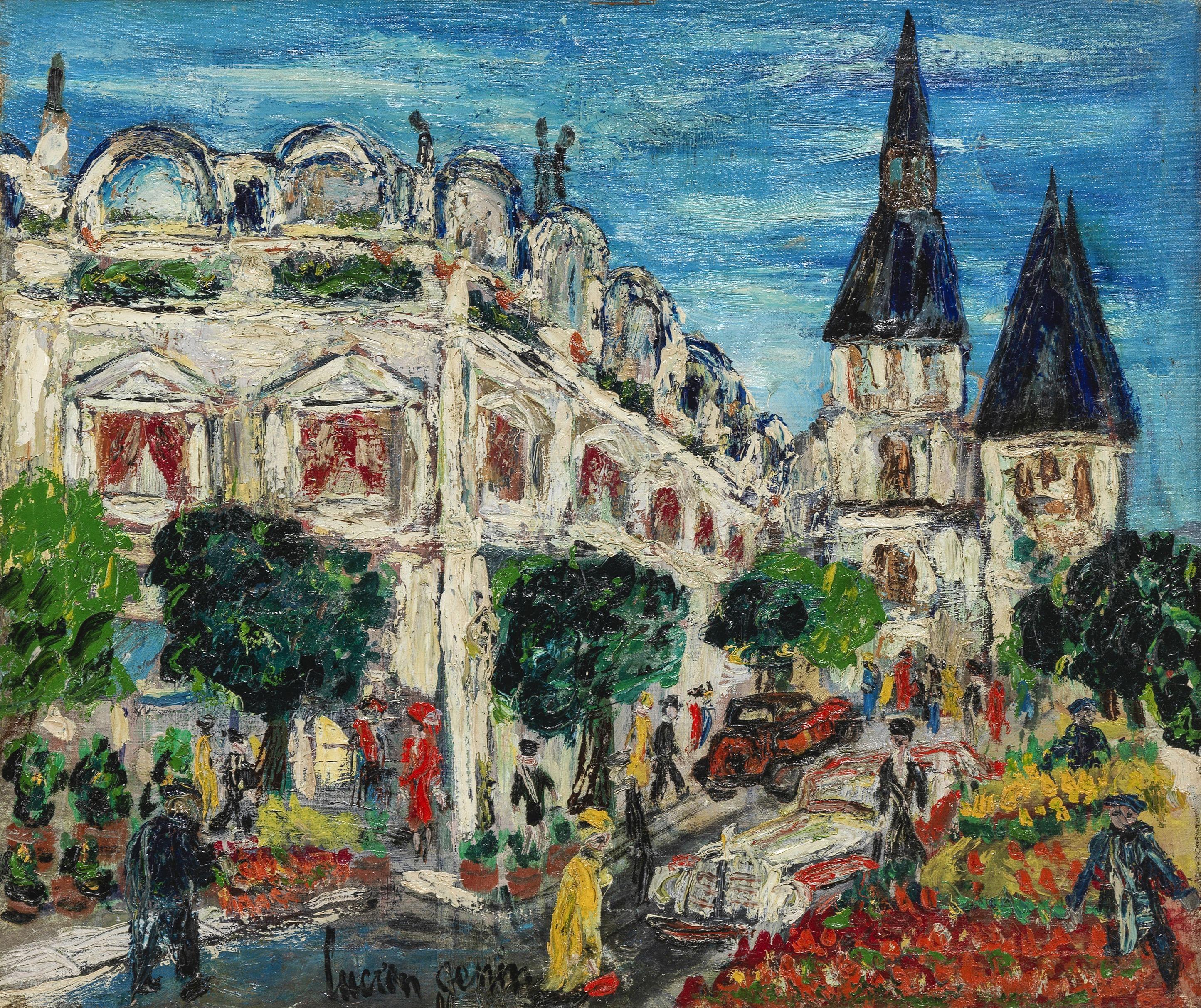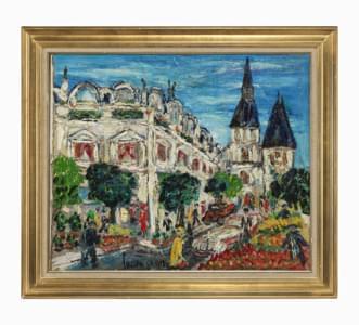 Place du Tertre en hiver, huile sur toile, signée, 60x71 cm