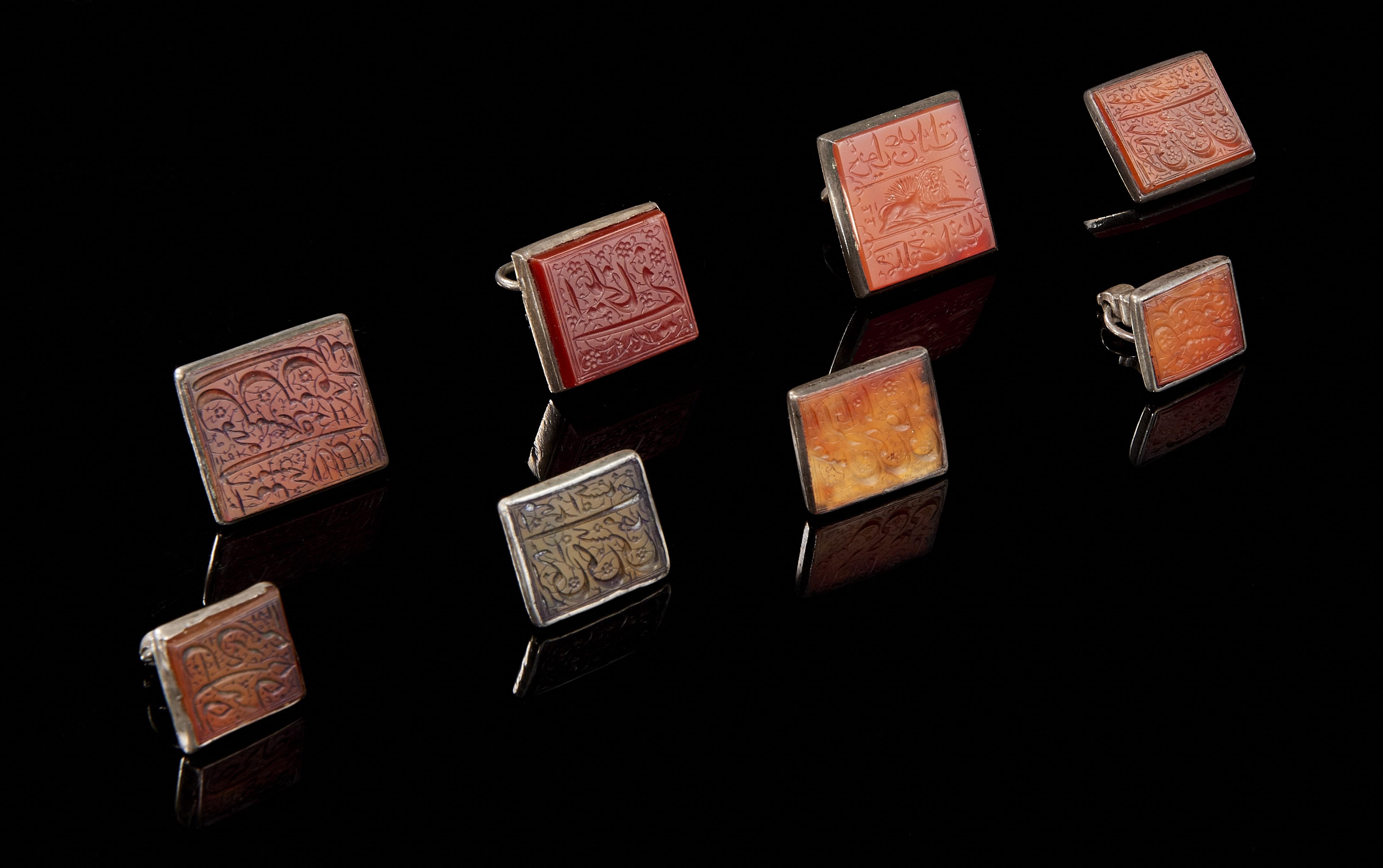 96. 8 sceaux rectangulaires montés en argent, Iran, époque Qajar (1786–1925)