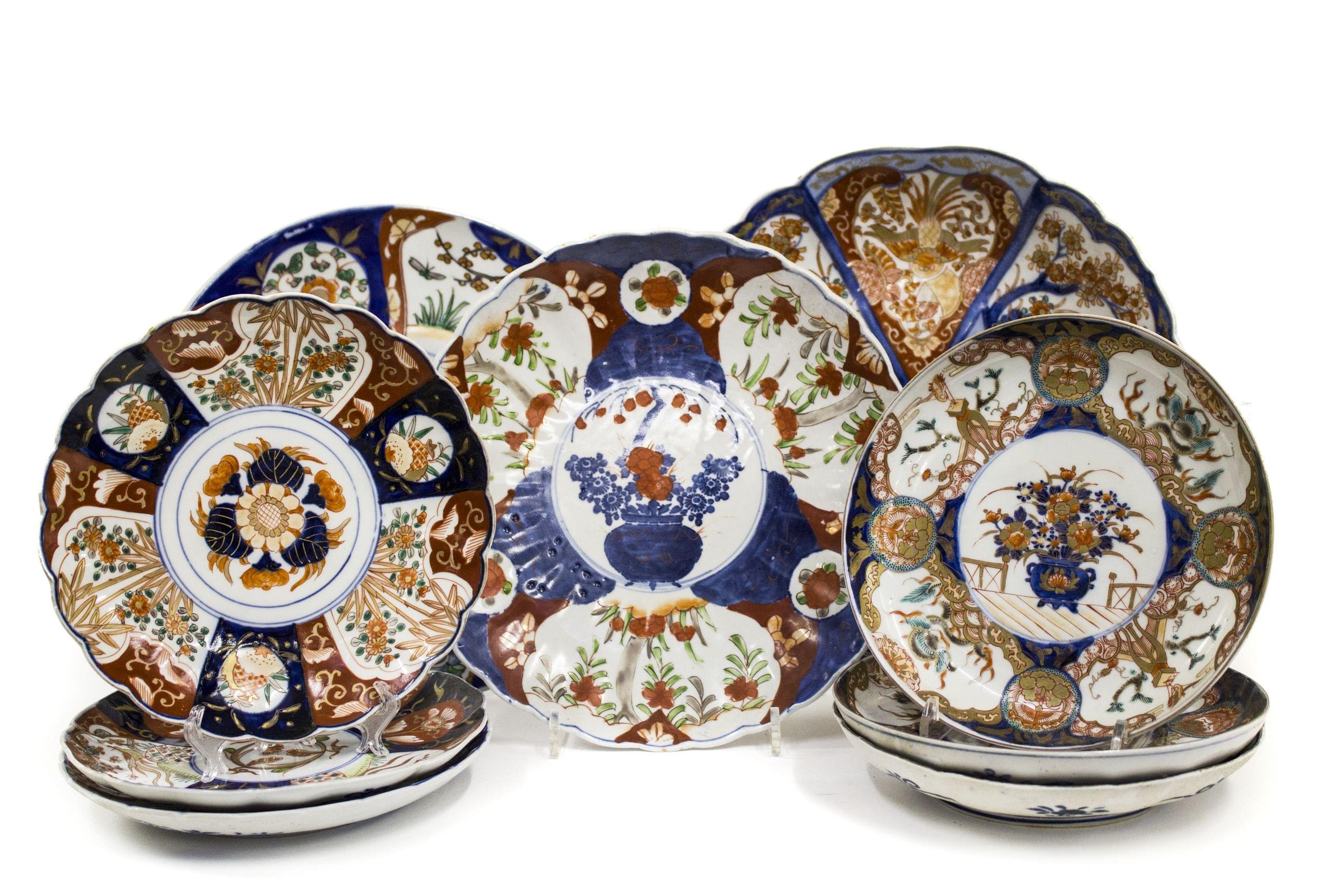 Porcelaine émaillée bleu, rouge et or, à décor de fleurs, D 11 c...