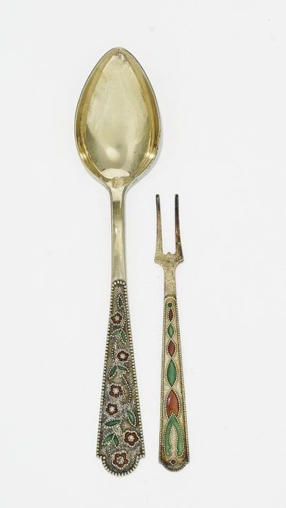 Saint-Pétersbourg, XIXe s, argent, vermeil et émaux, H 9 cm, 90...