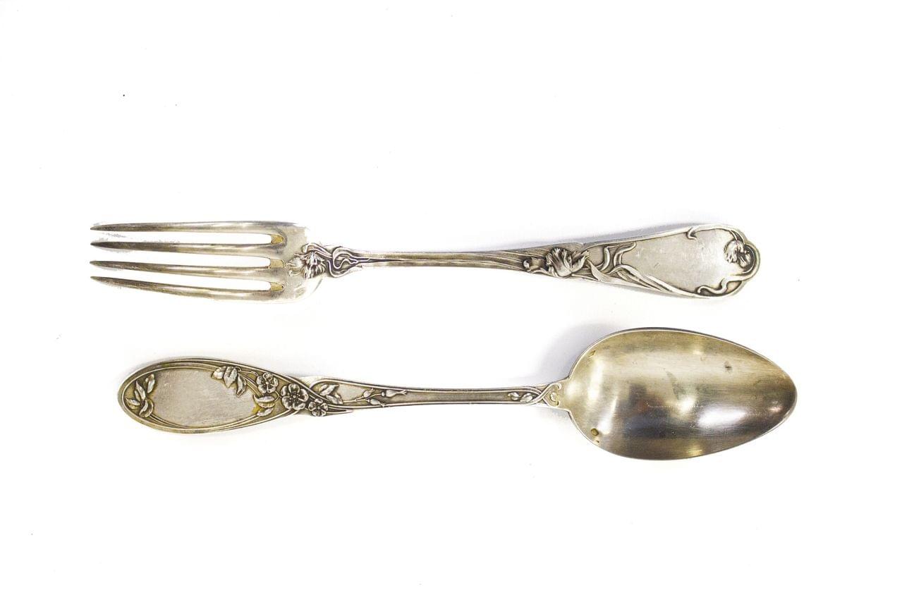 3486. 9 fourchettes et 9 cuillères Art nouveau et Belle Epoque de différents modèles