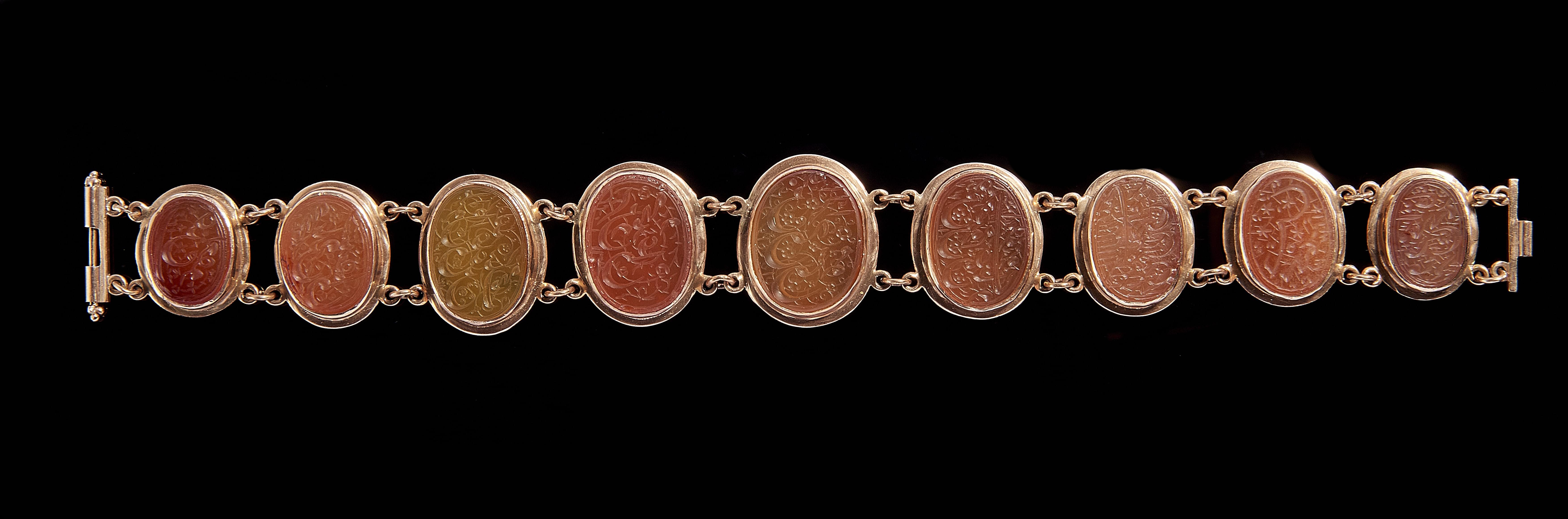 99. 9 sceaux ovales montés en bracelet, Iran, époque Qajar (1786–1925)